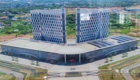 冬日暖阳下,俯瞰黄石临空经济区科创中心,一个飞机造型的大楼挥舞着两个巨大的翅膀,准备临空起飞。这是临空区·还地桥镇高效服务企业、服务群众的重要平台,也是黄石市首个新标准星级绿色建筑。