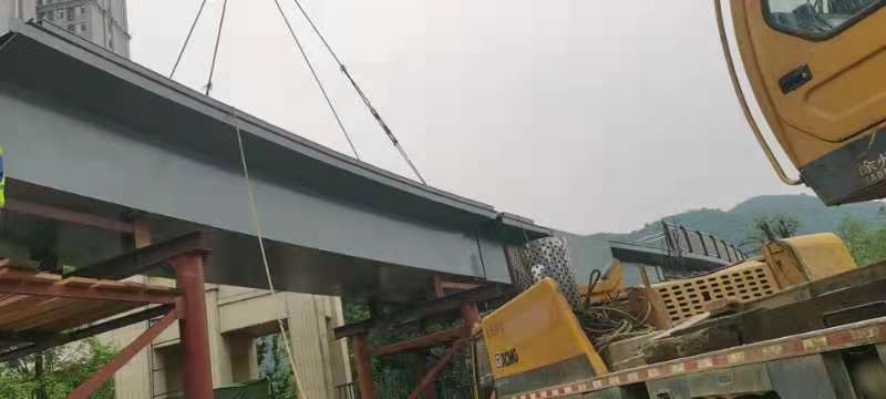 2021年5月17日下午13点58分,由市住建局(建管办)负责实施的广州路景观桥连接线工程桥梁工程主体钢箱梁第三跨开始吊装,该景观人行天桥设计为钢箱梁连续梁人行天桥,主桥总长98m,钢箱梁跨径为27.5m+40m+30.5m,主桥宽3.5m,主体钢箱梁重量约为226吨,第三跨钢箱梁重量为84.5吨。吊装全过程安全合理,工序到位,交通疏导有序,严格按既定吊装方案实。至18点02分,经过4个小时吊装作业,第三跨钢箱梁顺利完成吊装。其余2跨钢箱梁吊装将陆续进行。市建管办将克服该地段车多人多的问题,科学组织、精细施工,整个景观人行天桥主体结构钢箱梁计划于5月21日全部吊装完成,25日完成全部焊接及涂装。