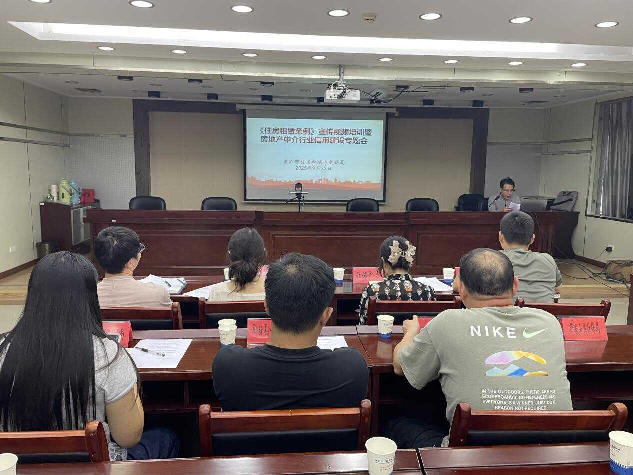 为做好《住房租赁条例》宣贯工作,贯彻落实“群租房”安全专项整治相关工作要求,提升住房租赁管理服务工作水平,进一步加强房地产中介行业信用建设,9月23日,我局组织召开《住房租赁条例》宣传视频培训暨房地产中介行业信用建设专题会。局房管科、政策法规科、住保科、住保中心、安监中心、物管中心、装饰办等相关部门,大冶市、阳新县住建局,各城区住保局,市房地产中介协会,锐信、贝壳等20余家房地产经纪机构负责同志参加了会议。