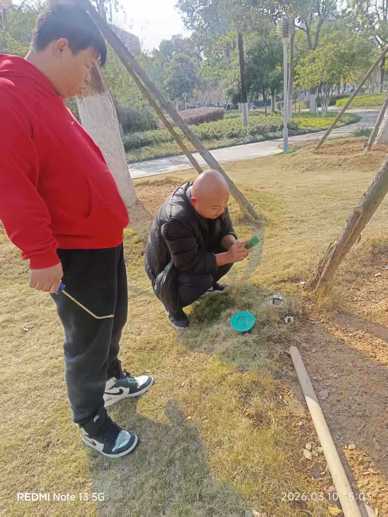 物理维护方面:人员密集的场所(如市图书馆地块)装置保护盖子容易遗失,装置盖损失3个,损失率达到30%,人员非密集场所(如消防公园和人防公园山上)装置保护盖损失1个,损失率为2.5%,及时采用石材遮盖;对装置内出现的草根、虫类进行清理;对1个装置人为破坏完全暴露的进行了重新埋设,破坏率为2%;1个装置遗失,遗失率为2%。