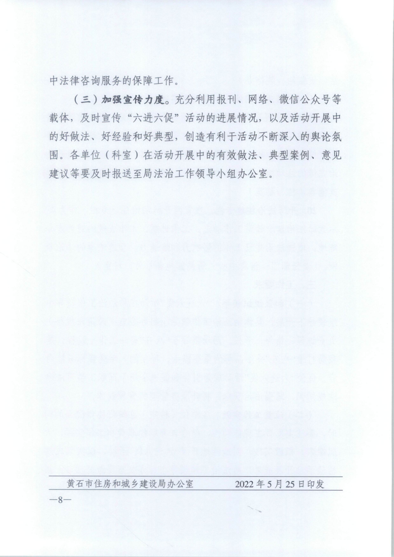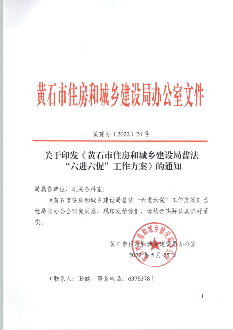 关于印发《黄石市住房和城乡建设局普法“六进六促”工作方案》的通知
