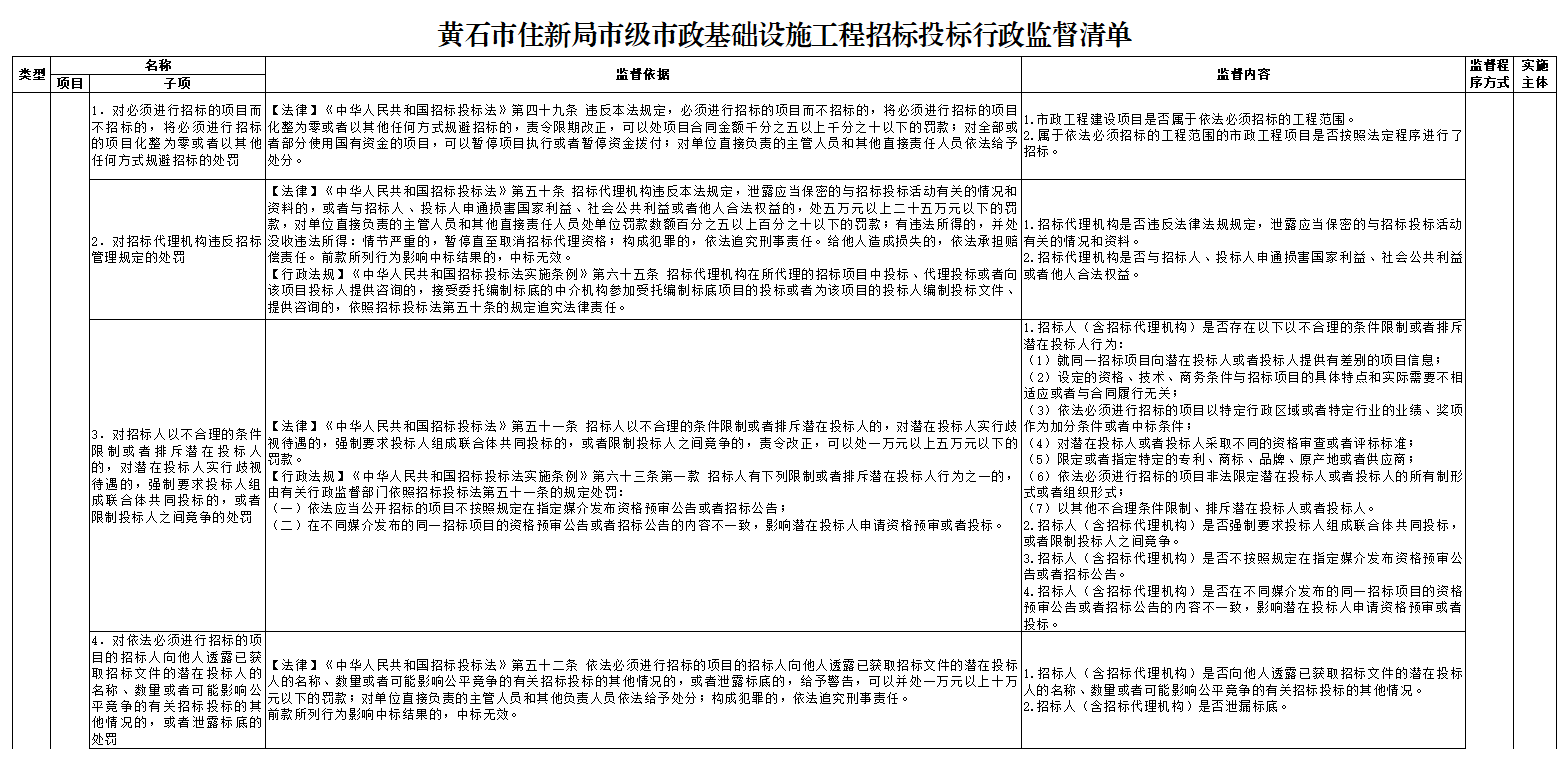 黄石市住新局市级市政基础设施工程招标投标行政监督清单
