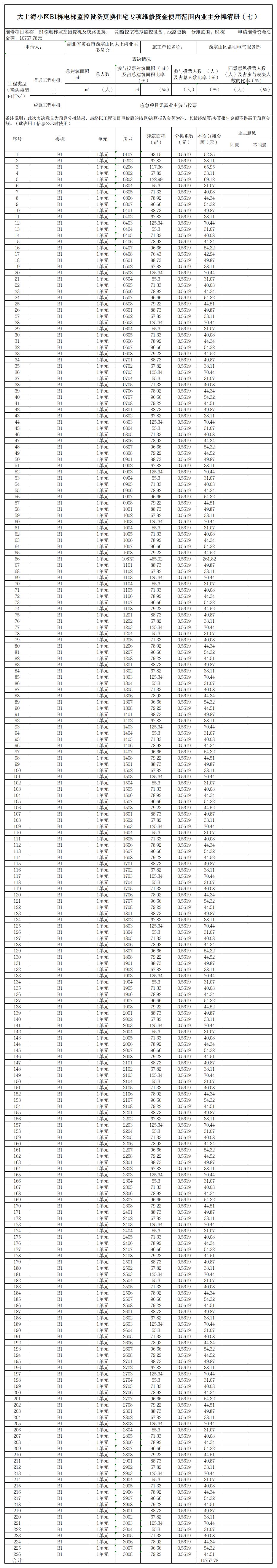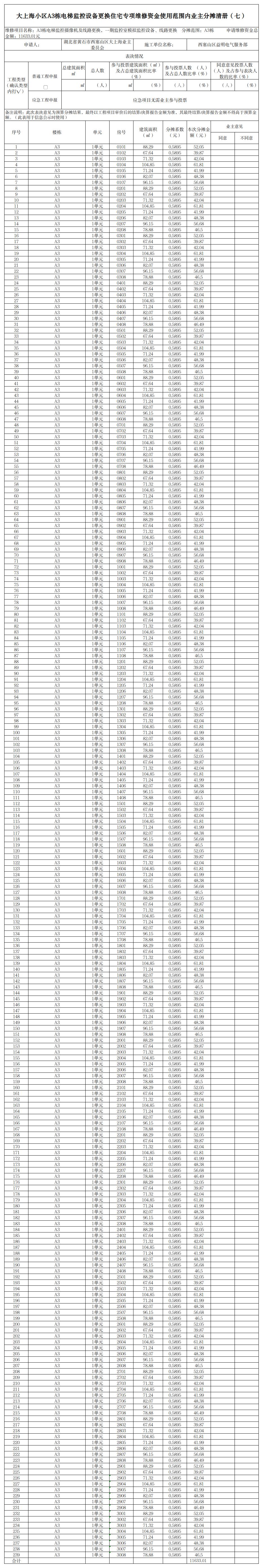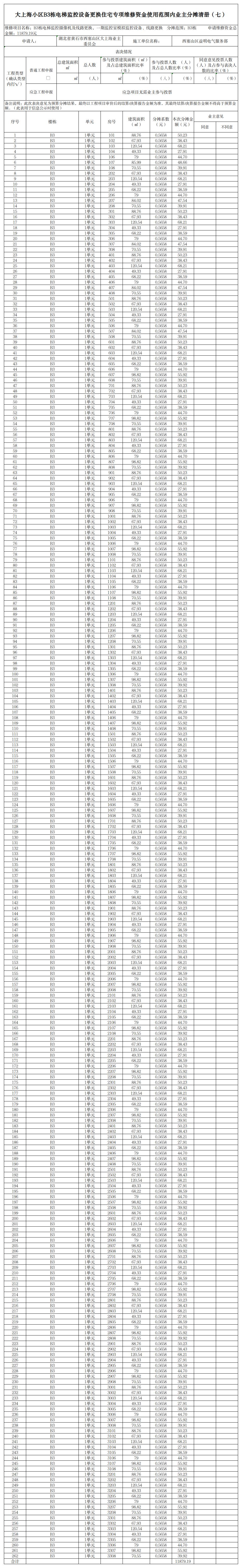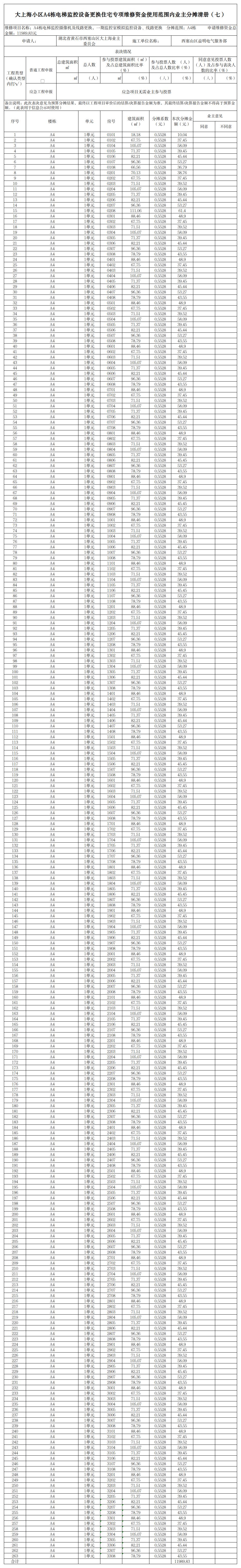 大上海小区A1-B3电梯监控,监控室模拟监控设备、线路更换住宅专项维修资金使用范围内业主分摊清册(七)