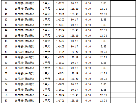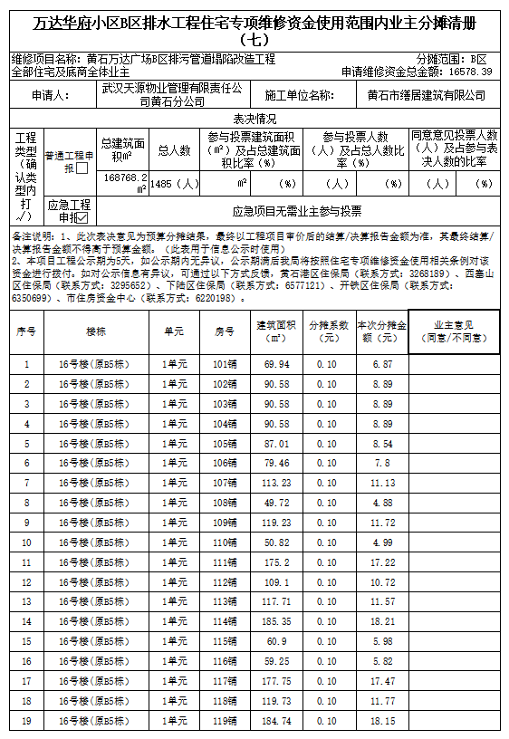 万达华府小区B区排水工程住宅专项维修资金使用范围内业主分摊清册(七)