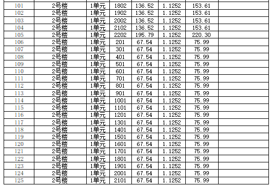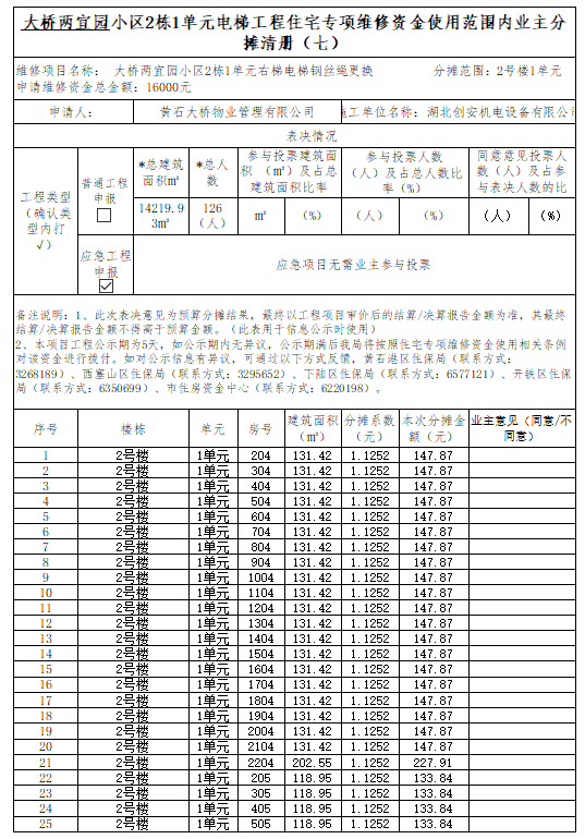 大桥两宜园小区2栋1单元电梯工程住宅专项维修资金使用范围内业主分摊清册(七)