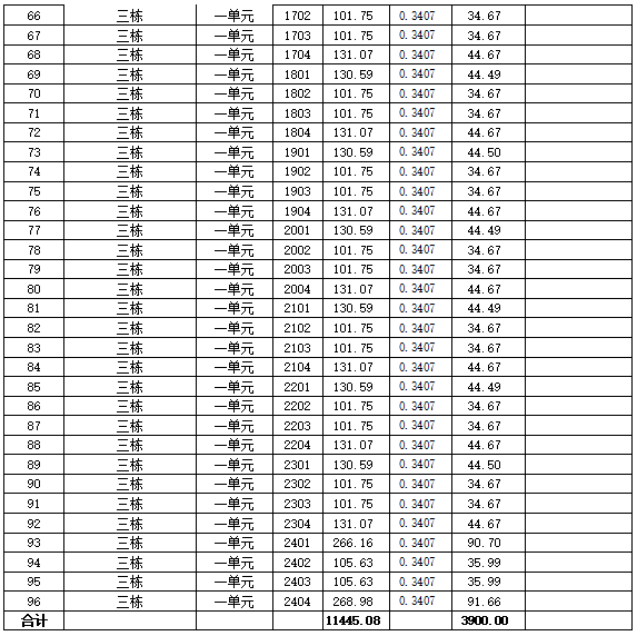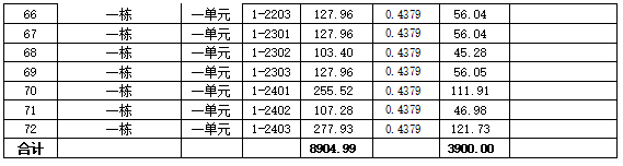 水云馨苑小区1栋1单元、3栋电梯工程住宅专项维修资金使用范围内业主分摊清册(七)