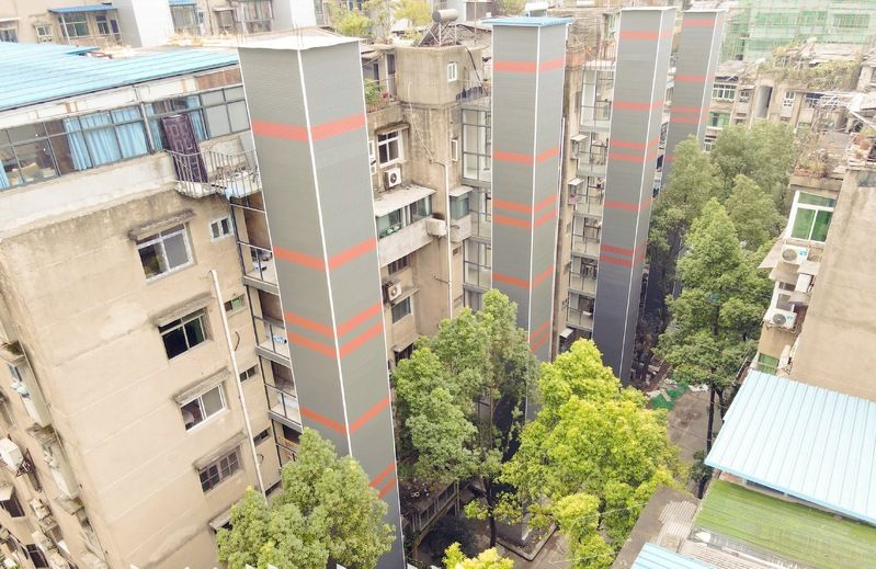 中窑湾2号楼建于2005年,半数家庭有60岁以上老人。华宝林介绍,居民对加装电梯的需求越来越迫切。但由于楼栋地理位置特殊,加梯工作遇到了多重困难。中窑湾2号楼毗邻西塞山区政府,仅一墙之隔,电梯主体钢构和土建部分尺寸不足,令多家电梯加装企业不敢接活。想要实现加装电梯的愿望,唯有拆除部分围墙,并借用西塞山区政府的土地。7月初,八泉街道办事处、临江社区向西塞山区机关事务服务中心反映情况并申请拆墙让地。两周后,西塞山区委、区政府给予文件批复,同意让出相邻的绿化用地,为中窑湾2号楼电梯加装工作提供便利。