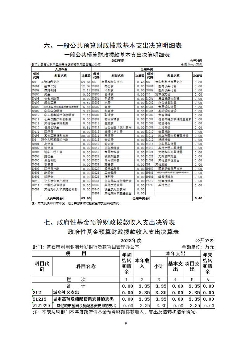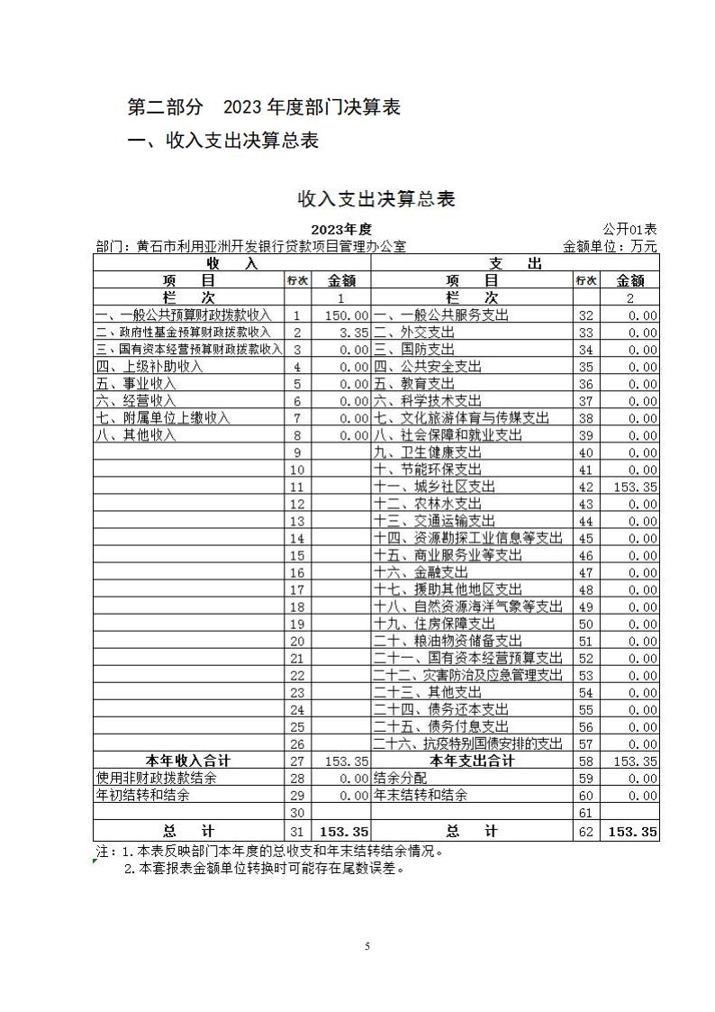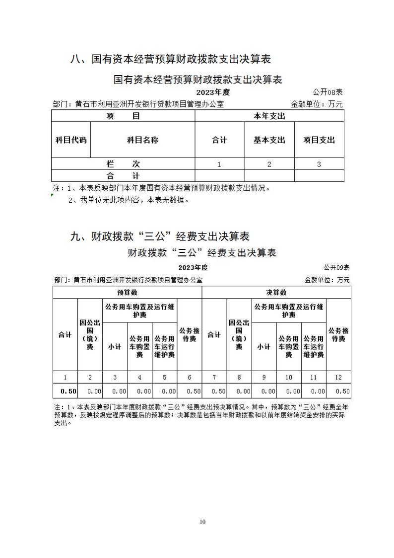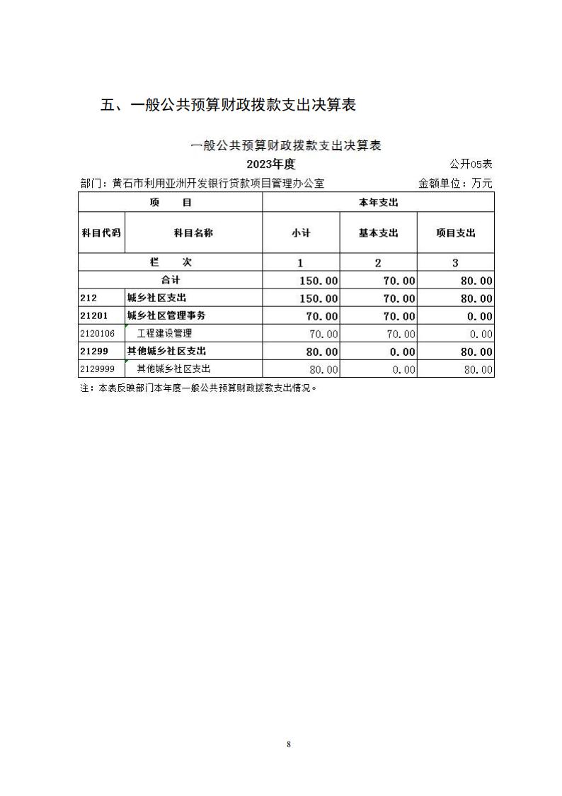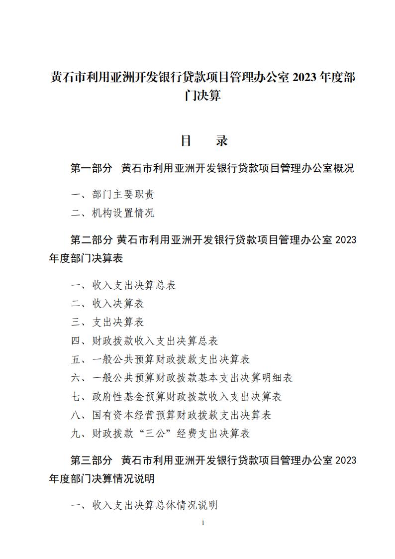 黄石市利用亚洲开发银行贷款项目管理办公室2023年度部门决算