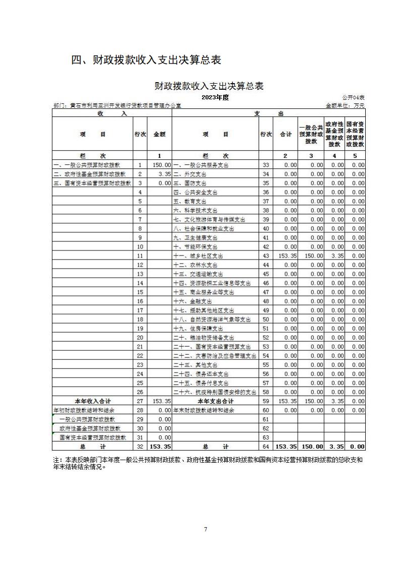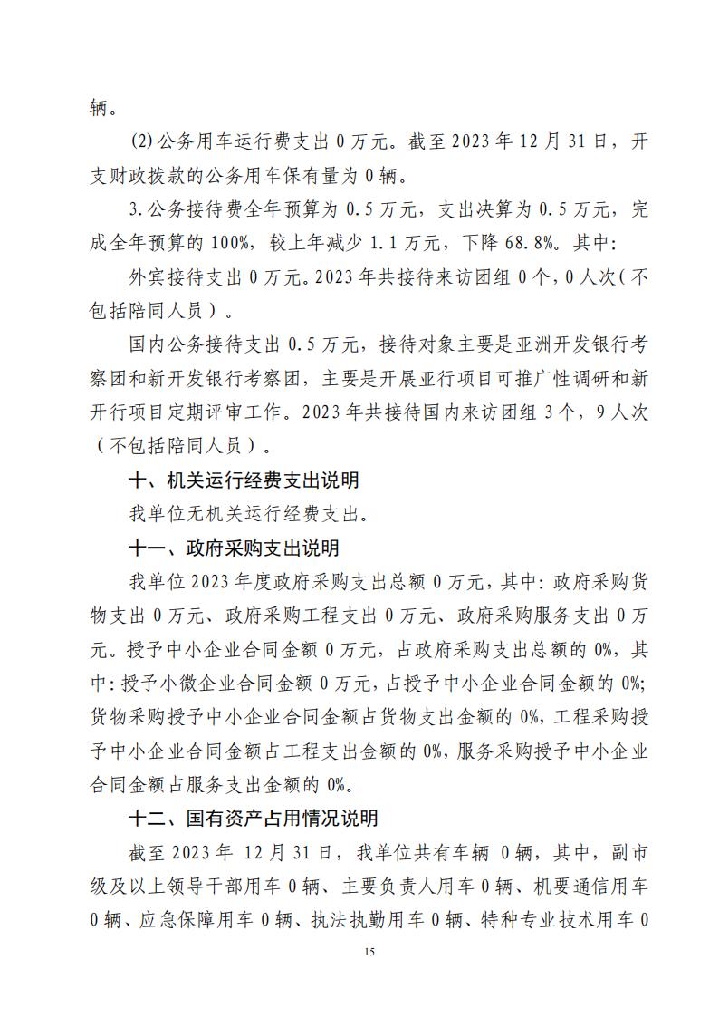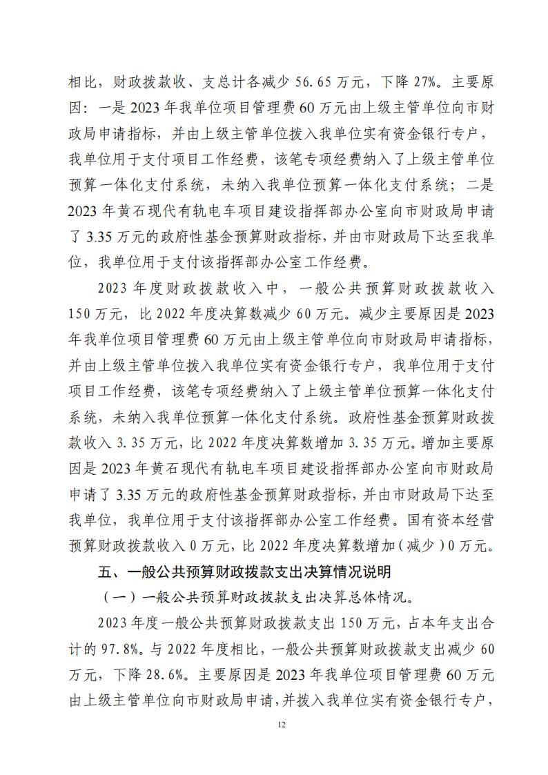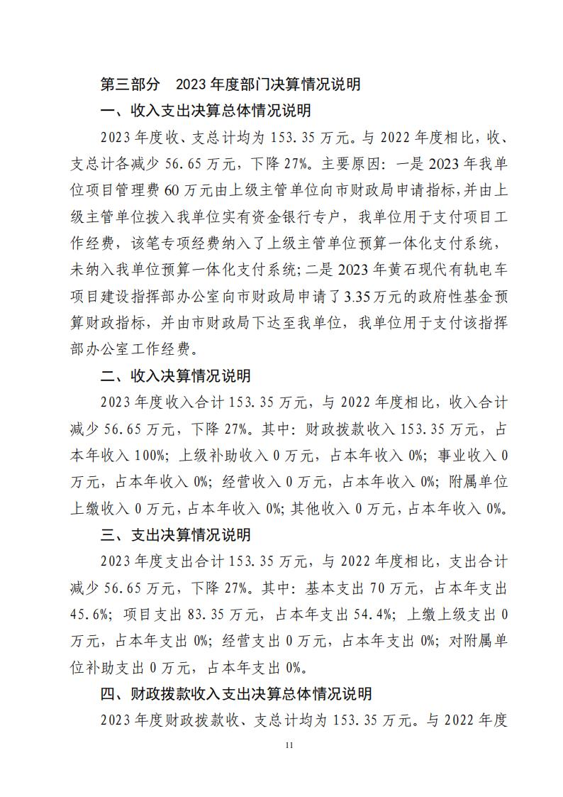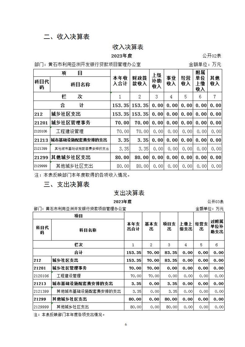 黄石市利用亚洲开发银行贷款项目管理办公室2023年度部门决算
