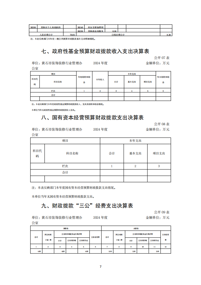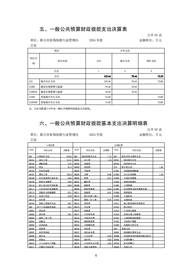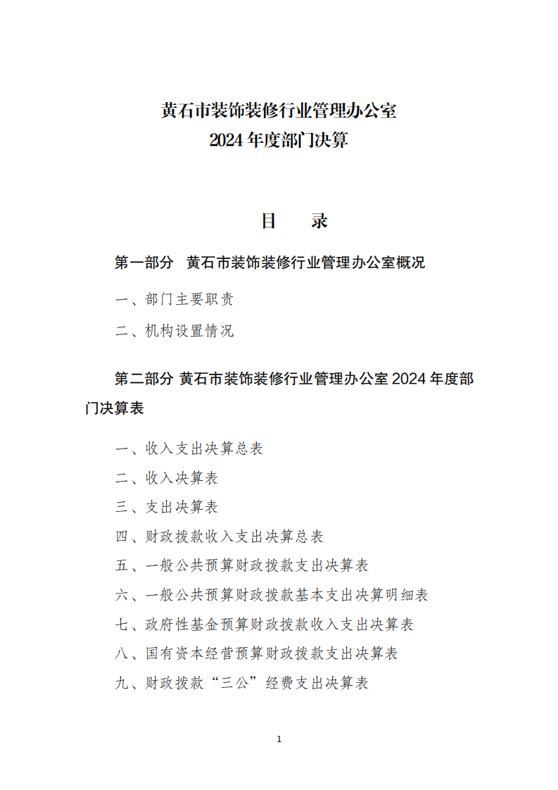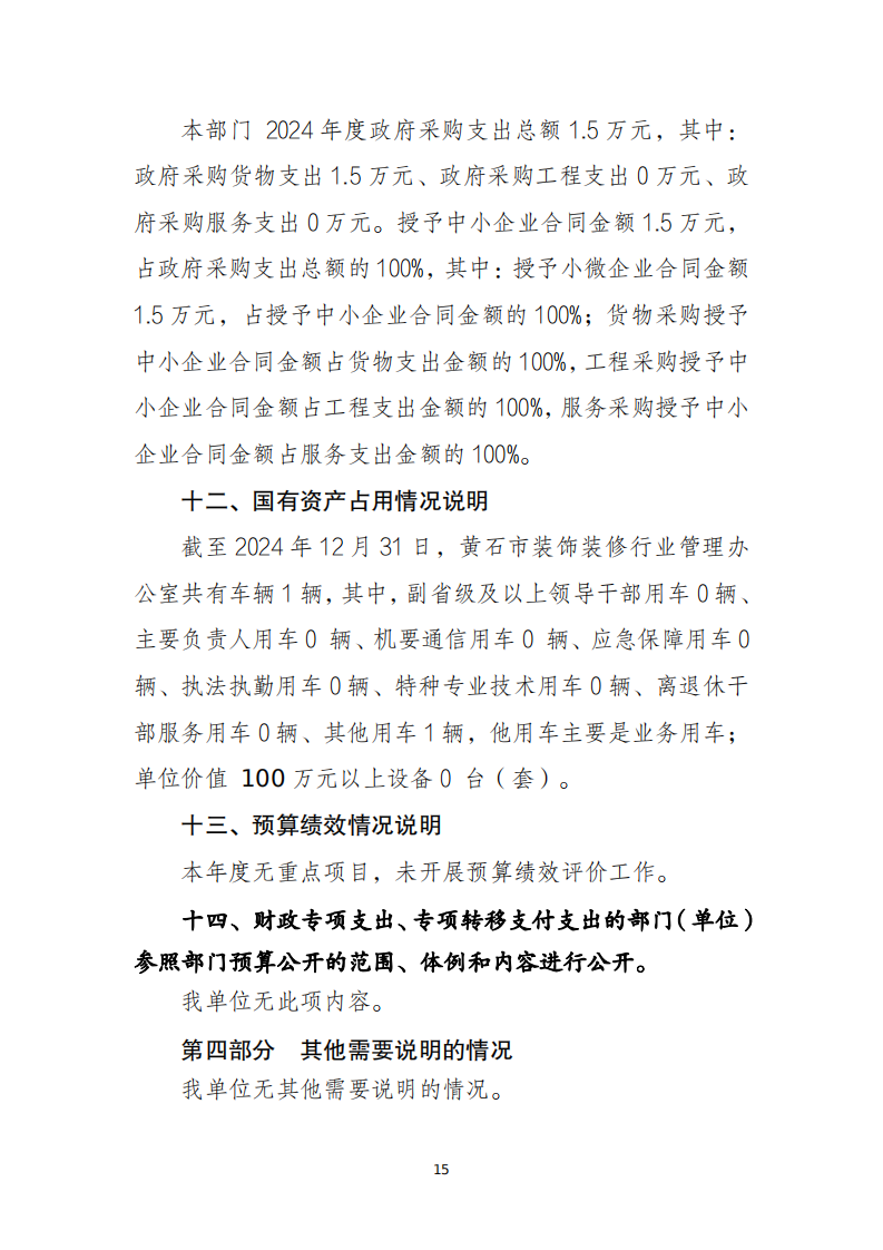 黄石市装饰装修行业管理办公室2024年度部门决算