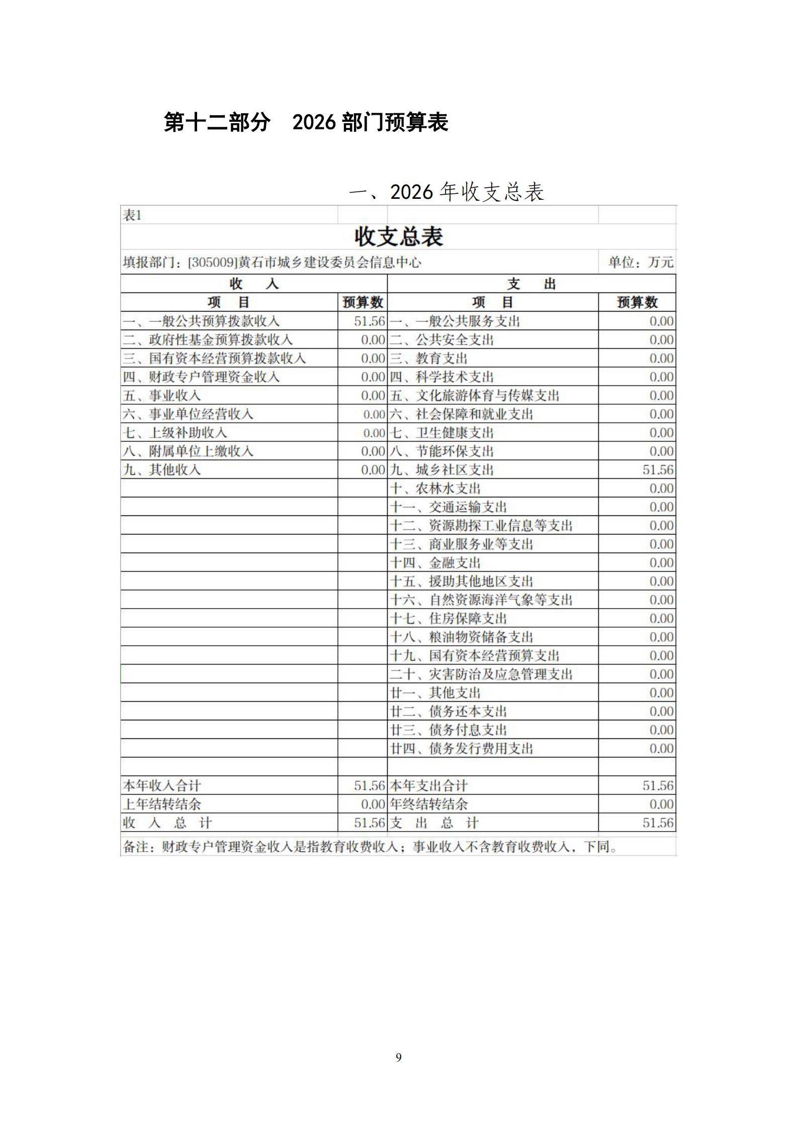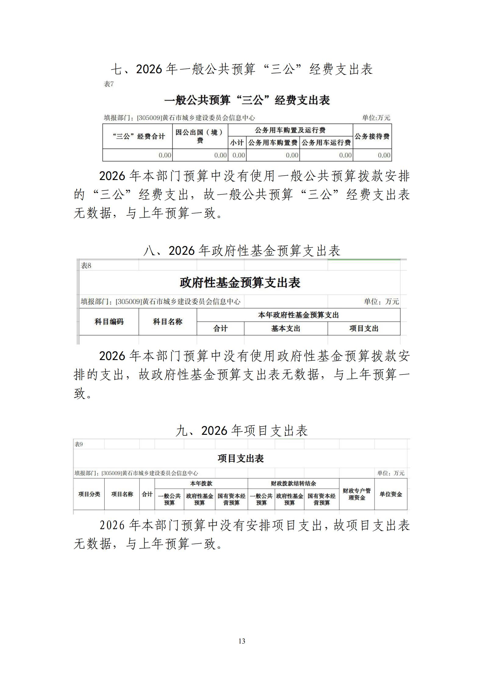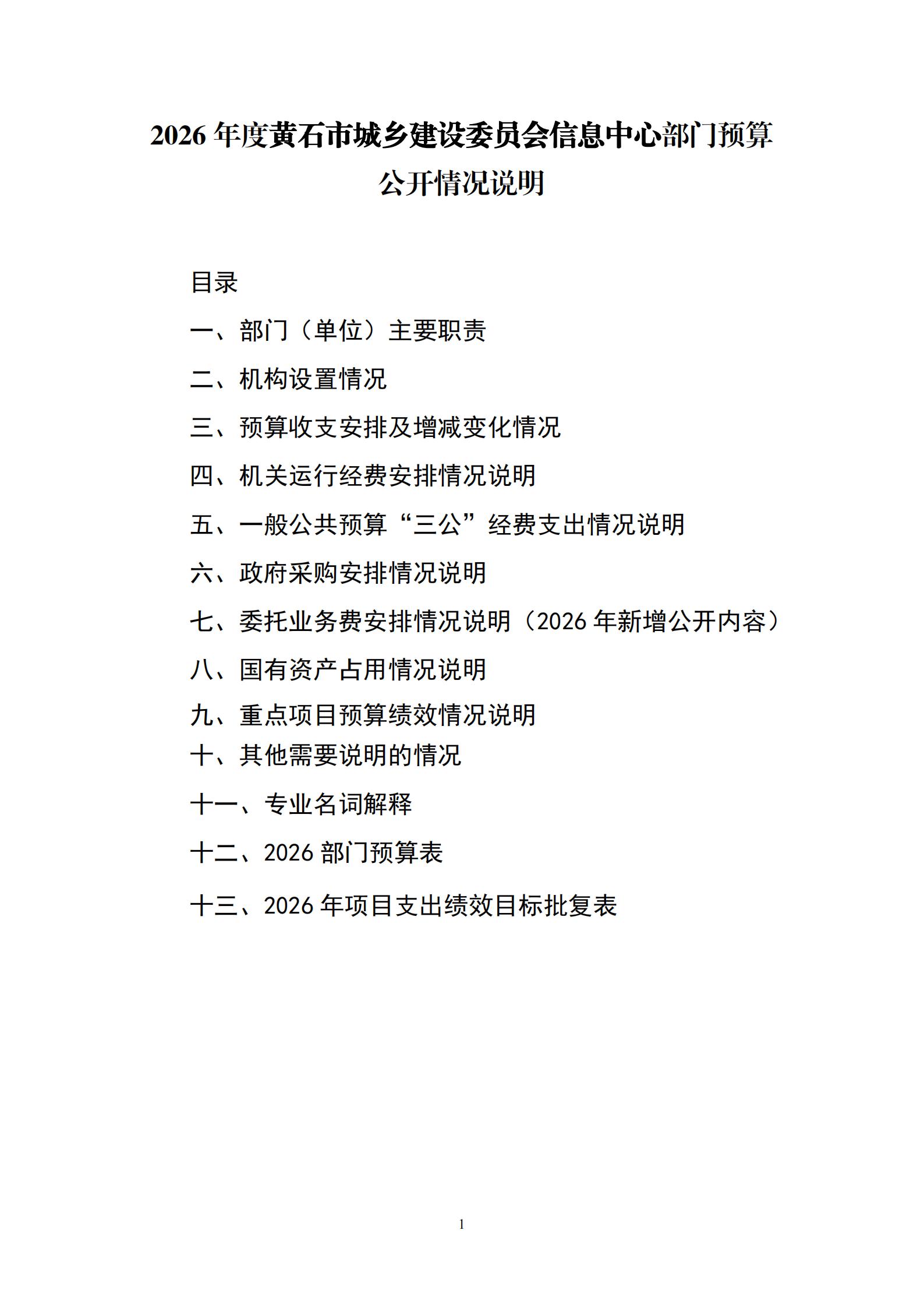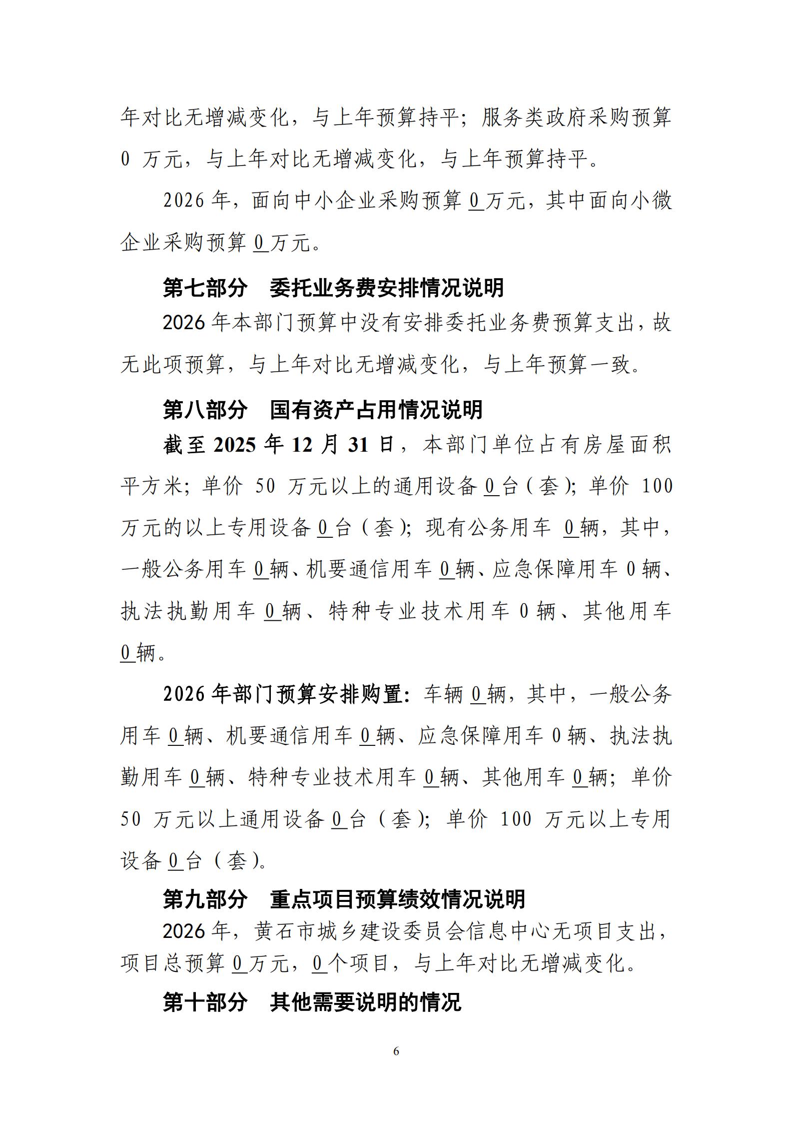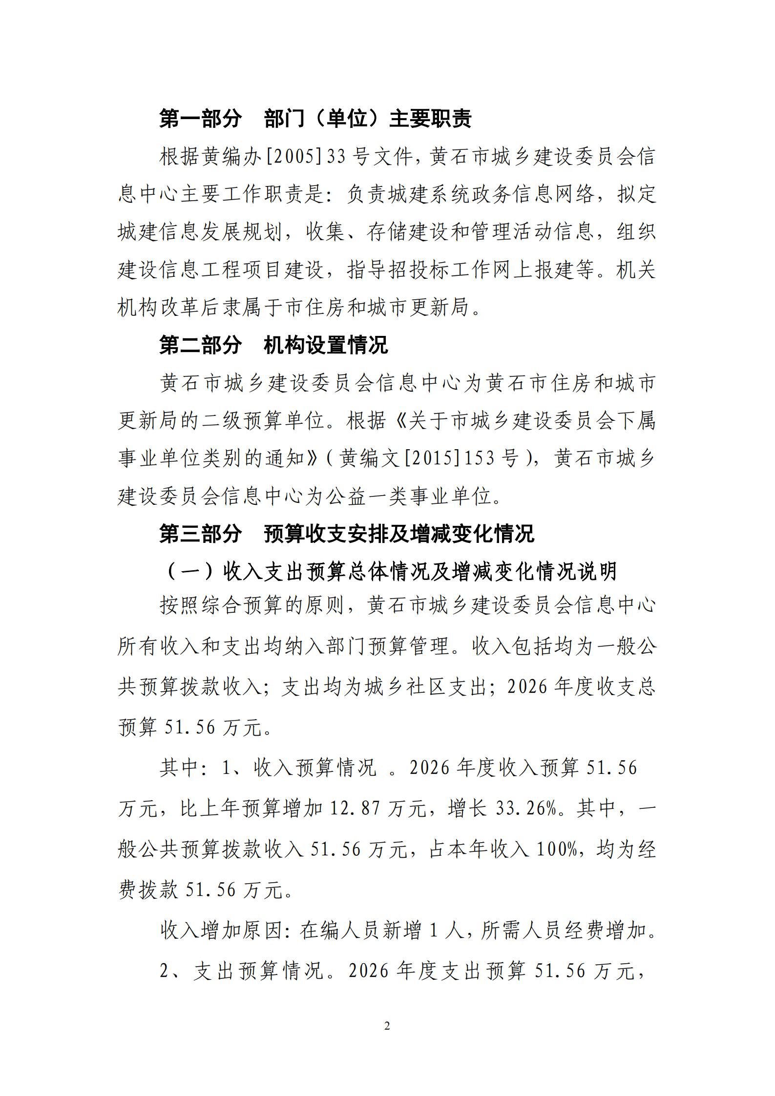 2026年黄石市城乡建设委员会信息中心财政预算公开