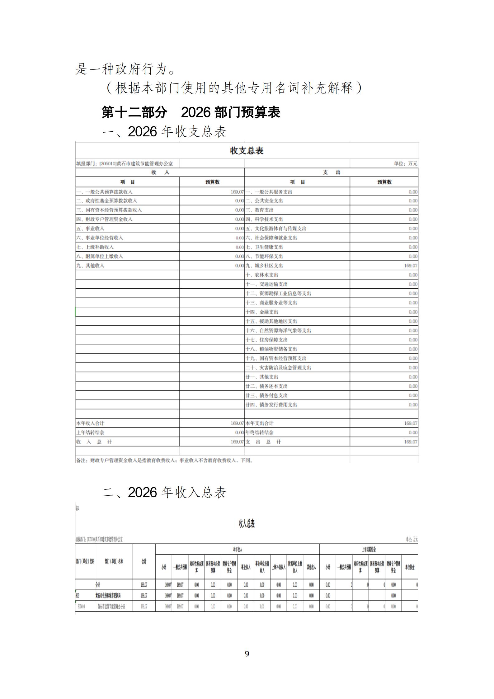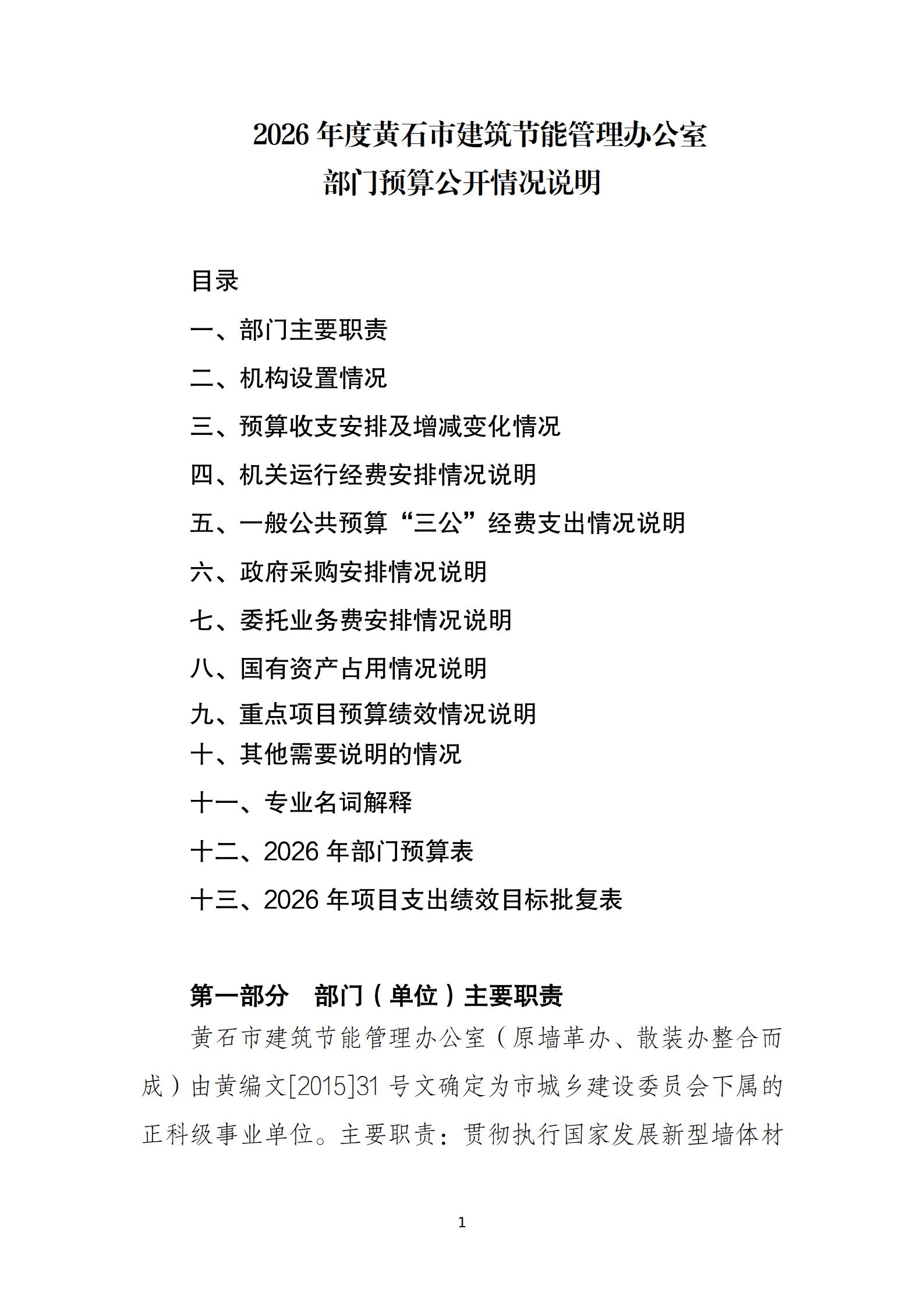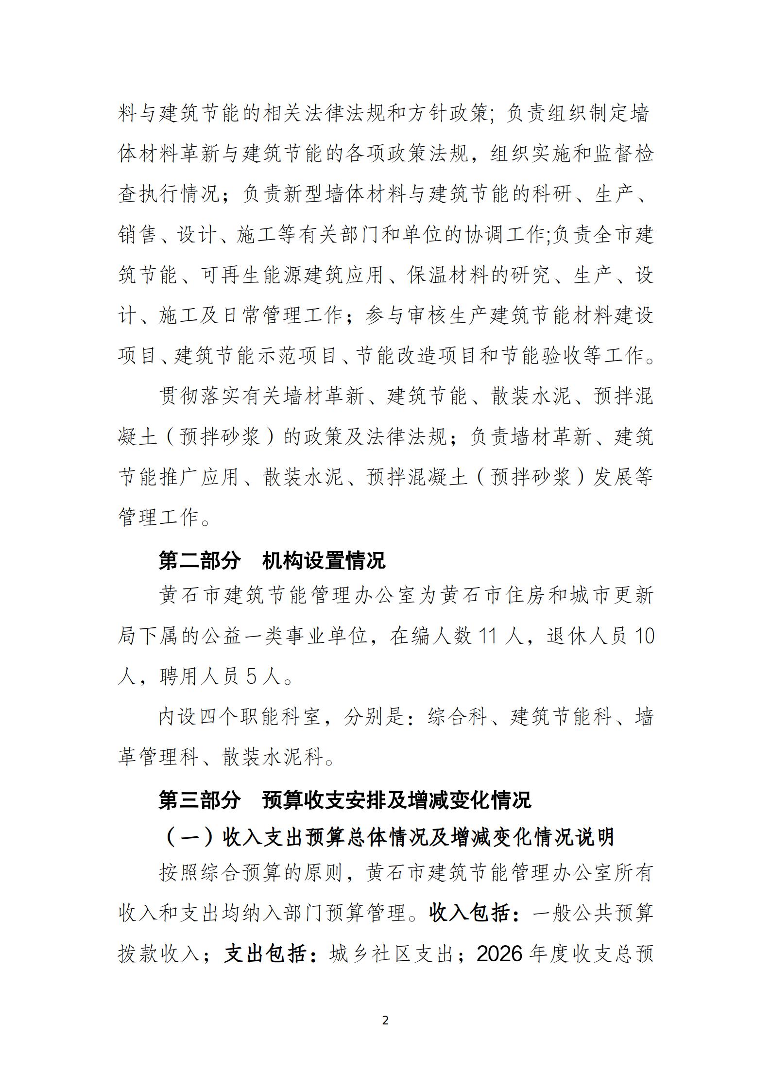 2026年度黄石市建筑节能管理办公室部门预算公开情况说明