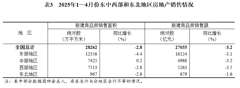 1—4月份,新建商品房销售面积28262万平方米,同比下降2.8%,降幅比1—3月份收窄0.2个百分点;其中住宅销售面积下降2.1%。新建商品房销售额27035亿元,下降3.2%;其中住宅销售额下降1.9%。