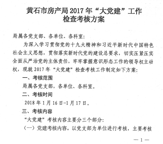 黄石市房产局2017年“大党建”工作检查考核方案