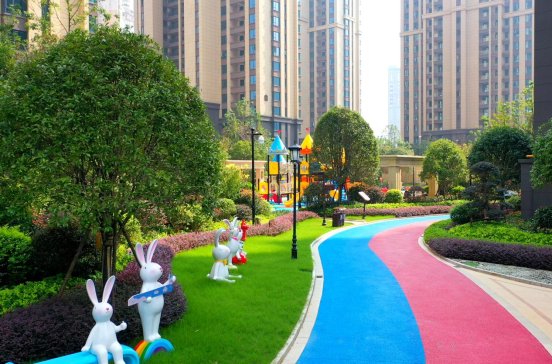 康娱设施:小区配有标准羽毛球场、室外泳池、儿童游乐广场、环小区跑道、架空层邻里交流中心等。