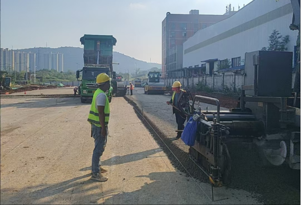 为保障项目水稳层施工的高标准与高质量,施工过程中建立全方位管控体系,技术人员现场指导,加强工人培训,引入全自动摊铺机、振动压路机等先进设备实时监控关键指标,采用“分层摊铺、阶梯推进”的施工方法,实现拌合、运输、摊铺、碾压等工序紧密衔接,全方位保障水稳层施工质量。下一步,项目各参建单位将在确保安全与质量双达标的基础上,全力投入到高质量、高效率的施工中,大力抓好沥青摊铺、交安、绿化等工作面,朝着通车目标发起最后冲刺。