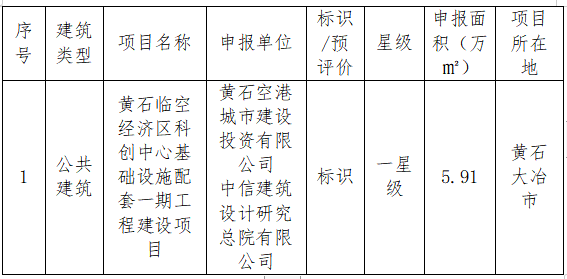 关于黄石市2025年第一批绿色建筑星级标识认定项目的公示