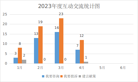 4月份,网站“互动交流”栏目共收到20件来信(其中“我要咨询”7件、“我要投诉”12件、“建言献策”1件),已办结20件,办结率100%,满意率100%。