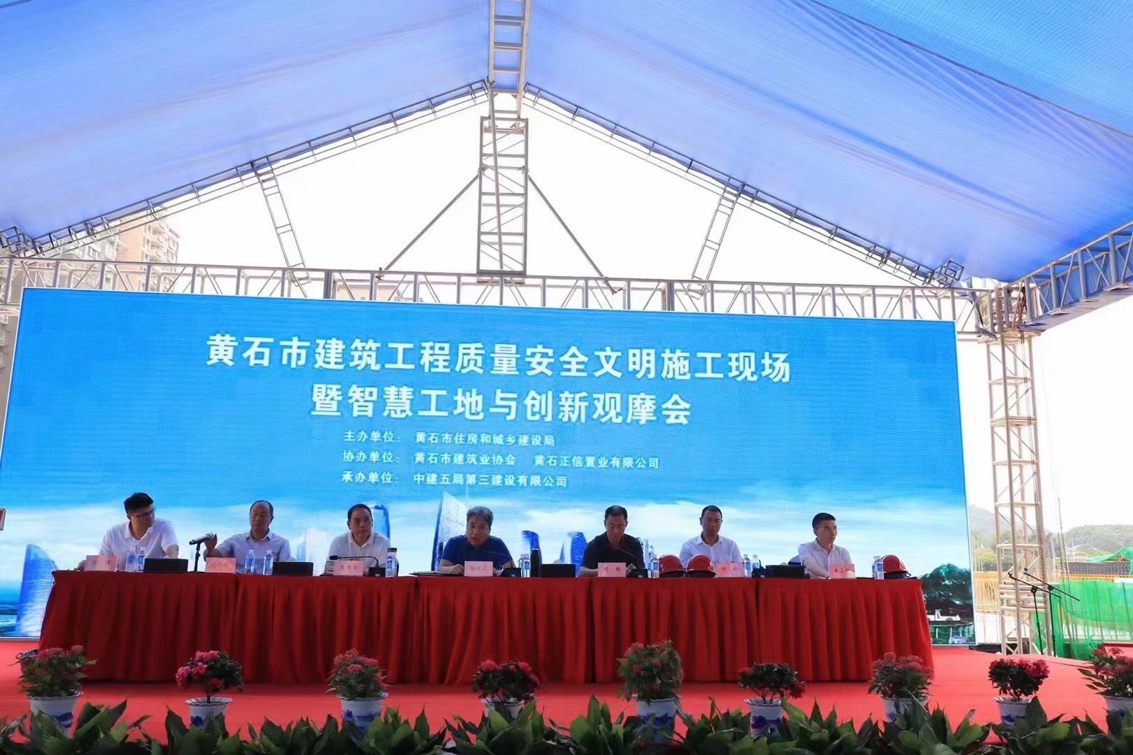 6月30日,由黄石市住房和城乡建设局主办的2021年全市建筑工程质量安全及文明施工现场观摩会在下陆区鄂旅投·正信花园二期项目举行。湖北省建设工程质量安全监督总站副站长周伟,中共黄石市委宣传部副部长、市创文办副主任、市委文明办主任王书南,黄石市人民政府副秘书长陆才炎,黄石市住房和城乡建设局党组书记、局长邓斌,黄石市生态环境局党组成员刘子俊出席并讲话。