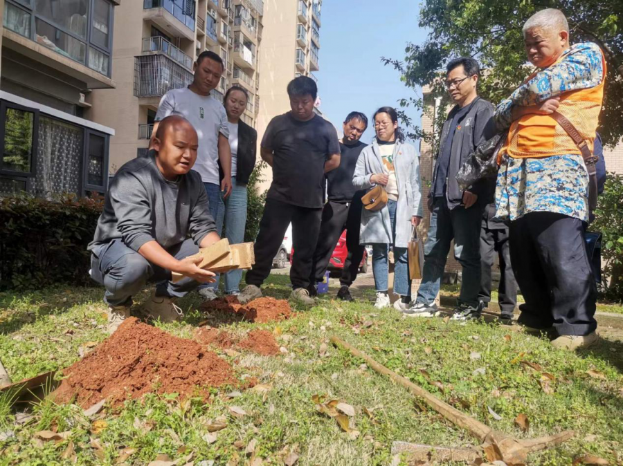 活动现场,市住建局蚁防所工程师李程讲解了小区绿化带白蚁的灭治方法,并普及了居民房屋出现白蚁时的防治知识。随后,该局蚁防所党小组工作人员对白马山小区绿化区域进行逐一排查,并对发现的几处白蚁隐患进行诱杀。