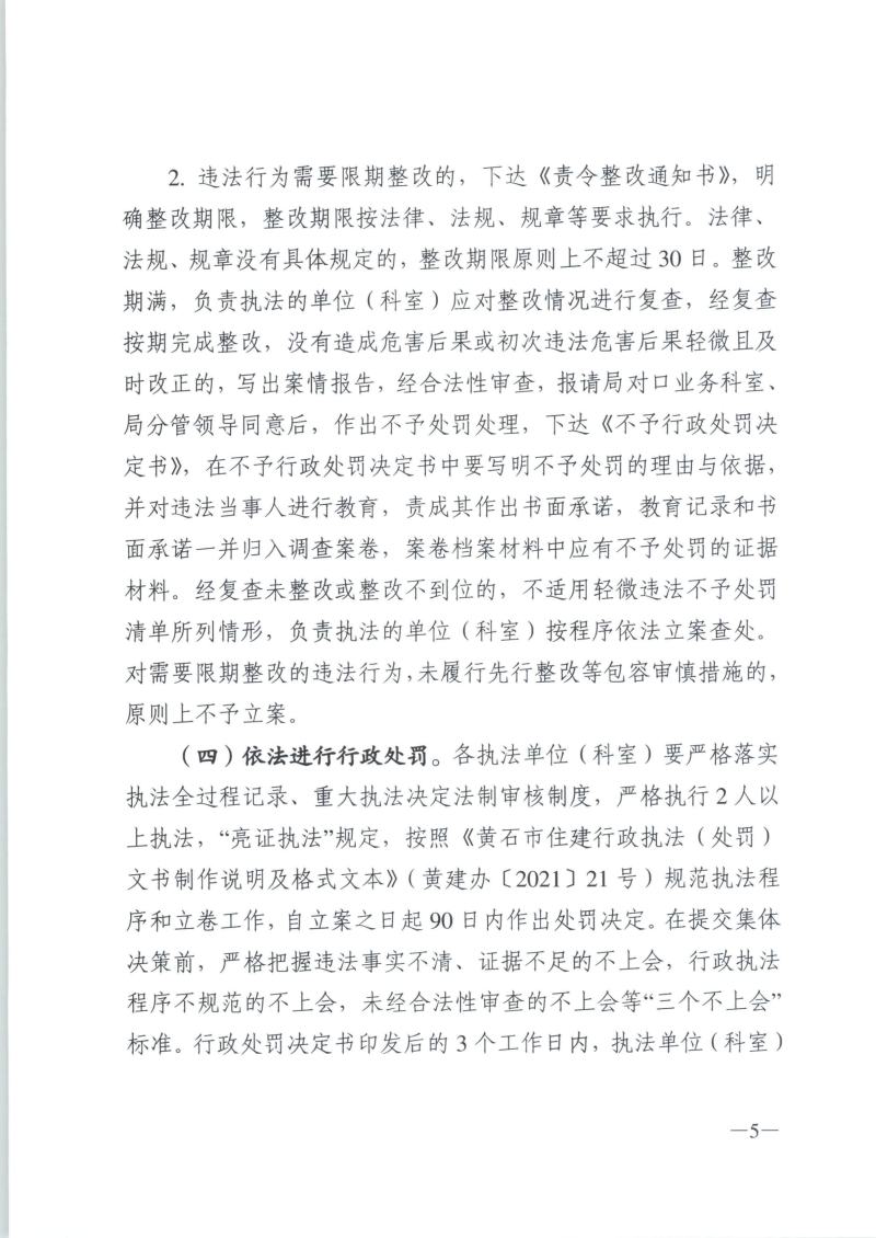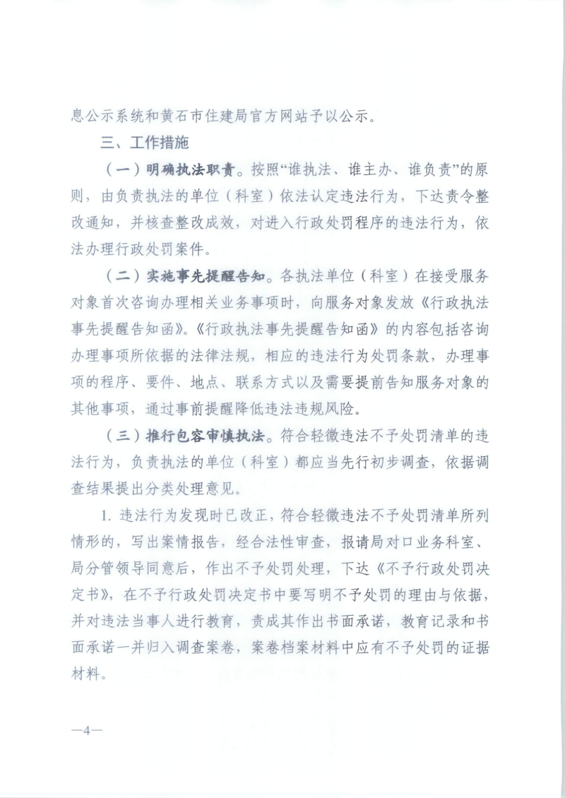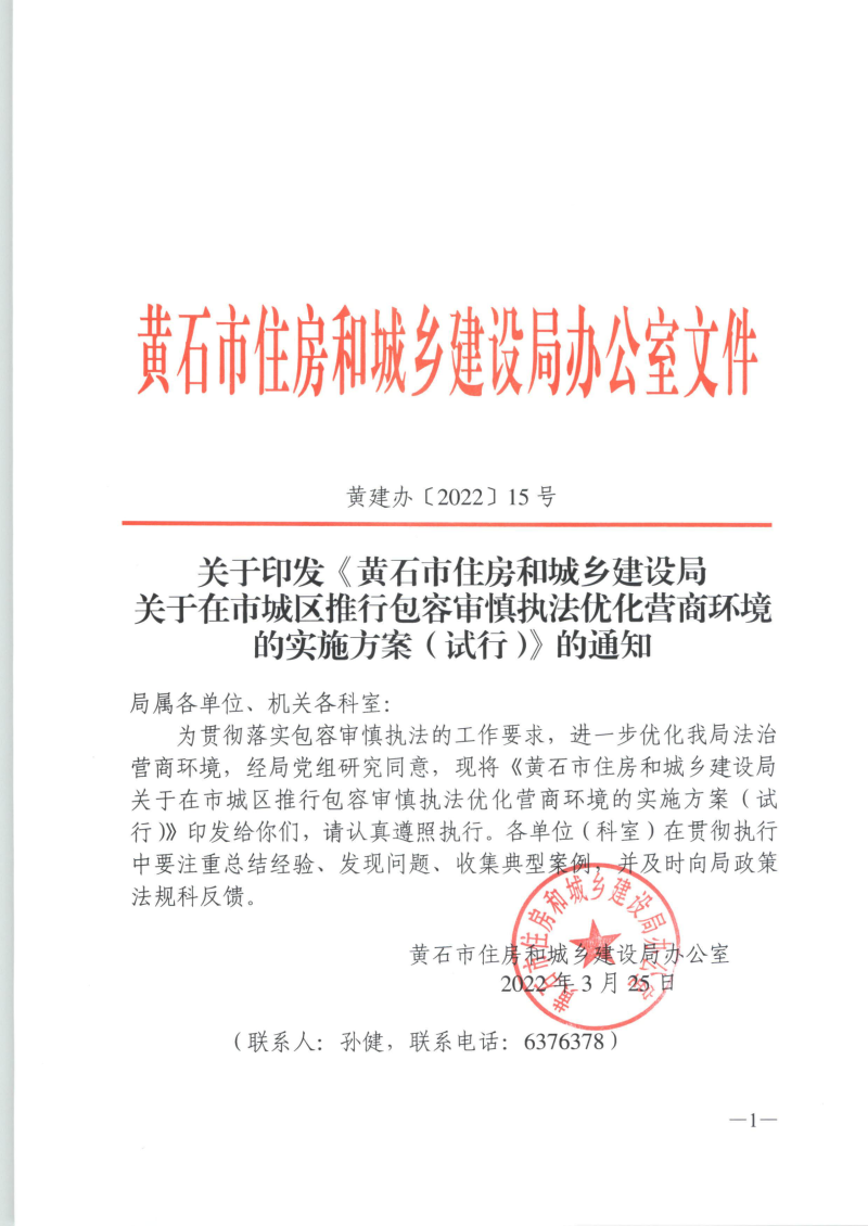 关于印发《黄石市住房和城乡建设局关于在市城区推行包容审慎执法优化营商环境的实施方案(试行)》的通知