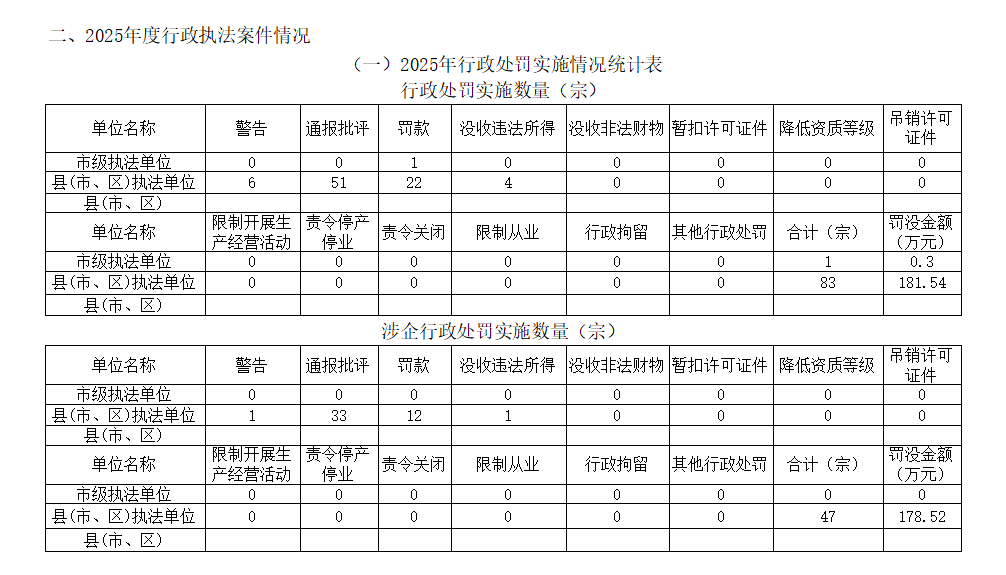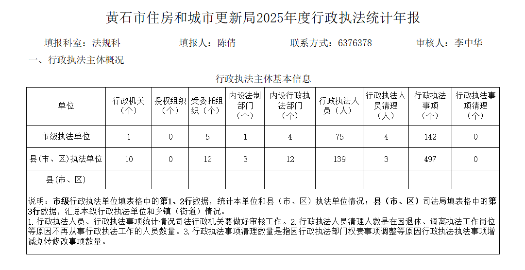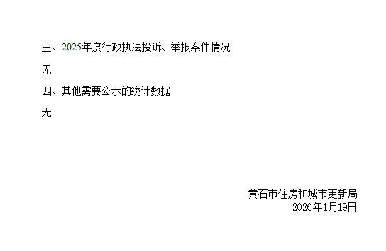 黄石市住房和城市更新局2025年度行政执法统计年报