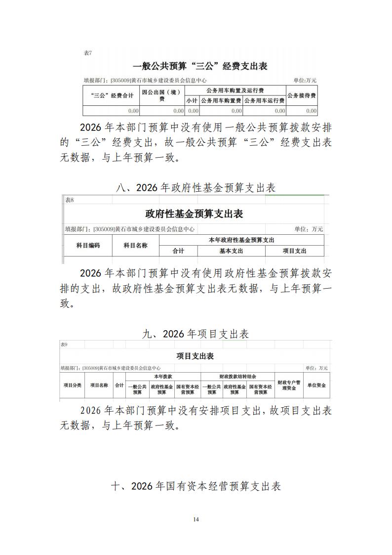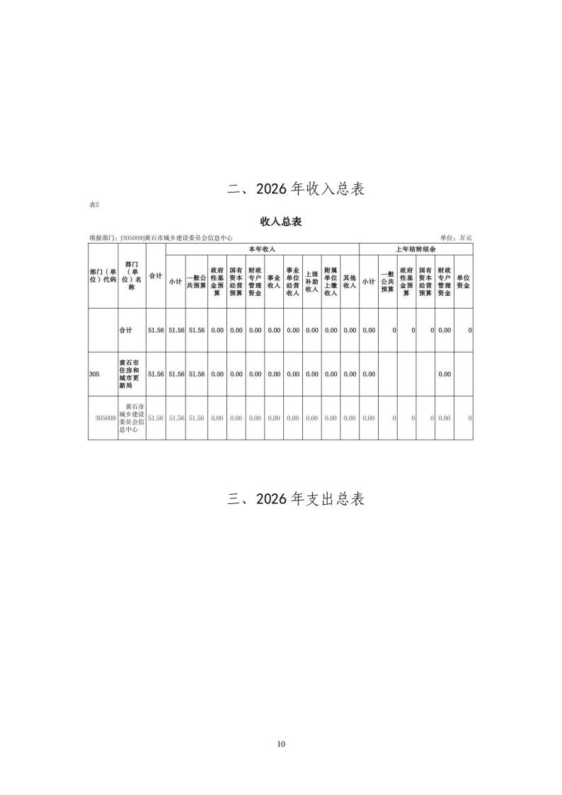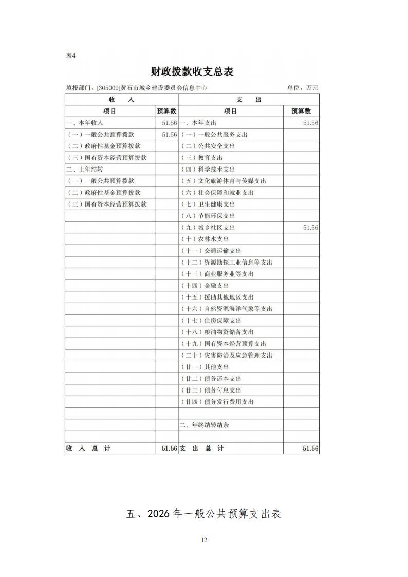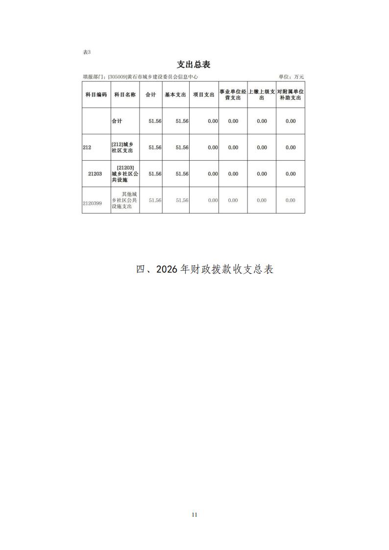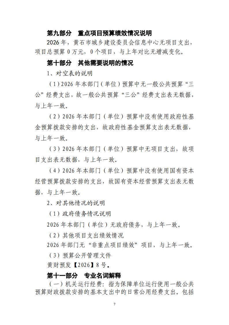 2026年黄石市城乡建设委员会信息中心财政预算公开