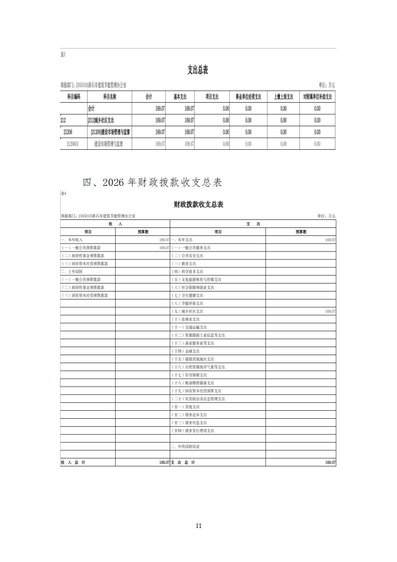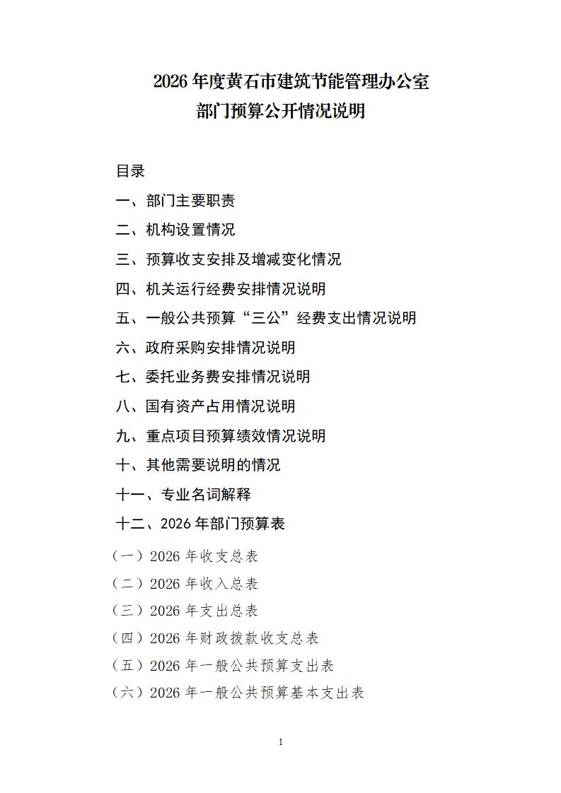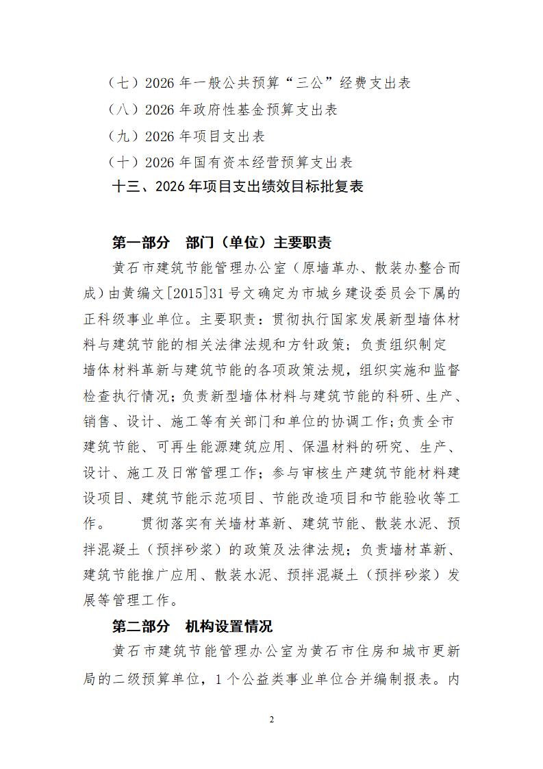 2026年度黄石市建筑节能管理办公室部门预算公开情况说明