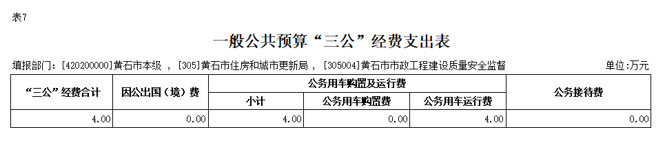(2)公务用车运行费4万元,与上年对比无增减变化,与上年预算持平。