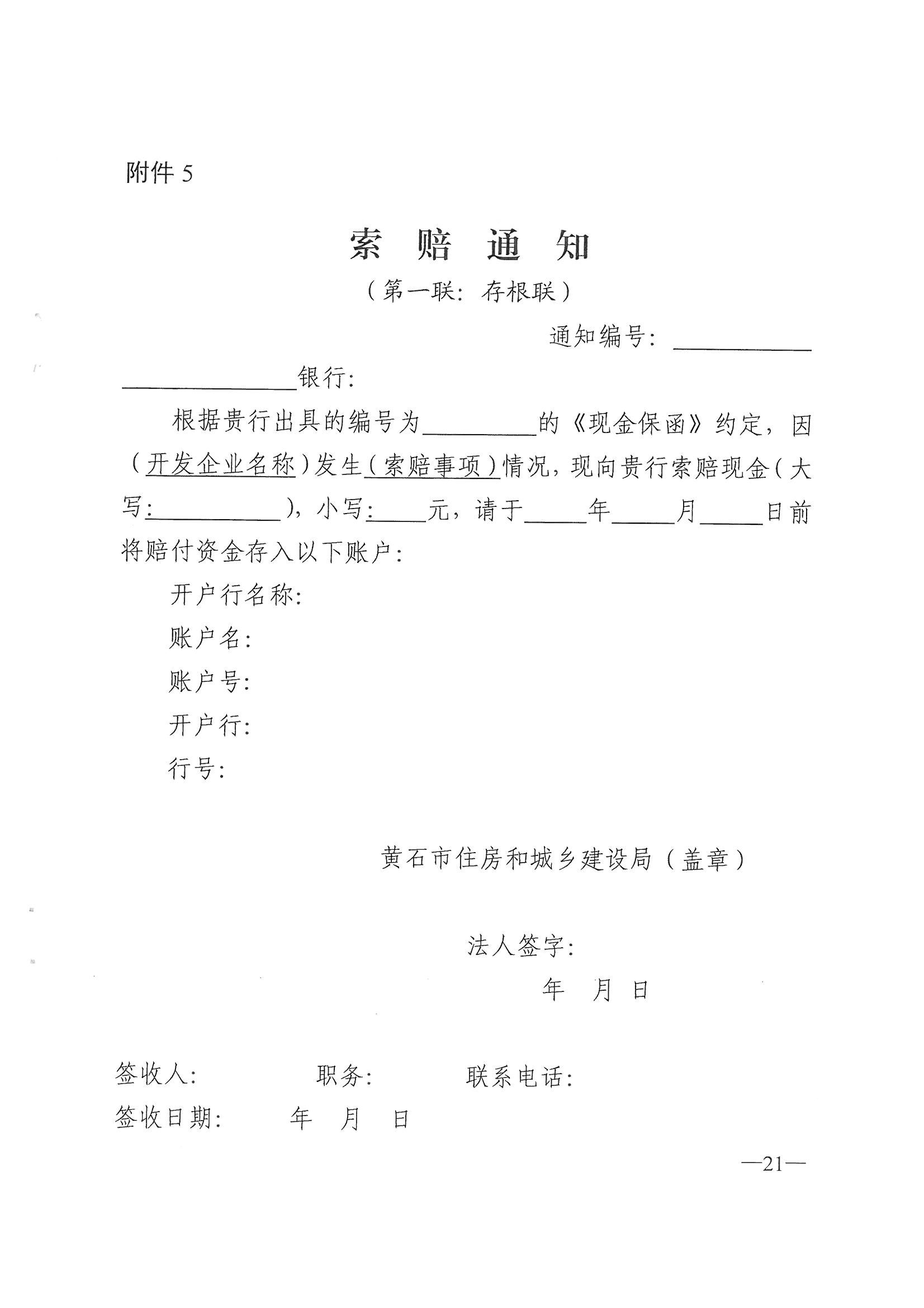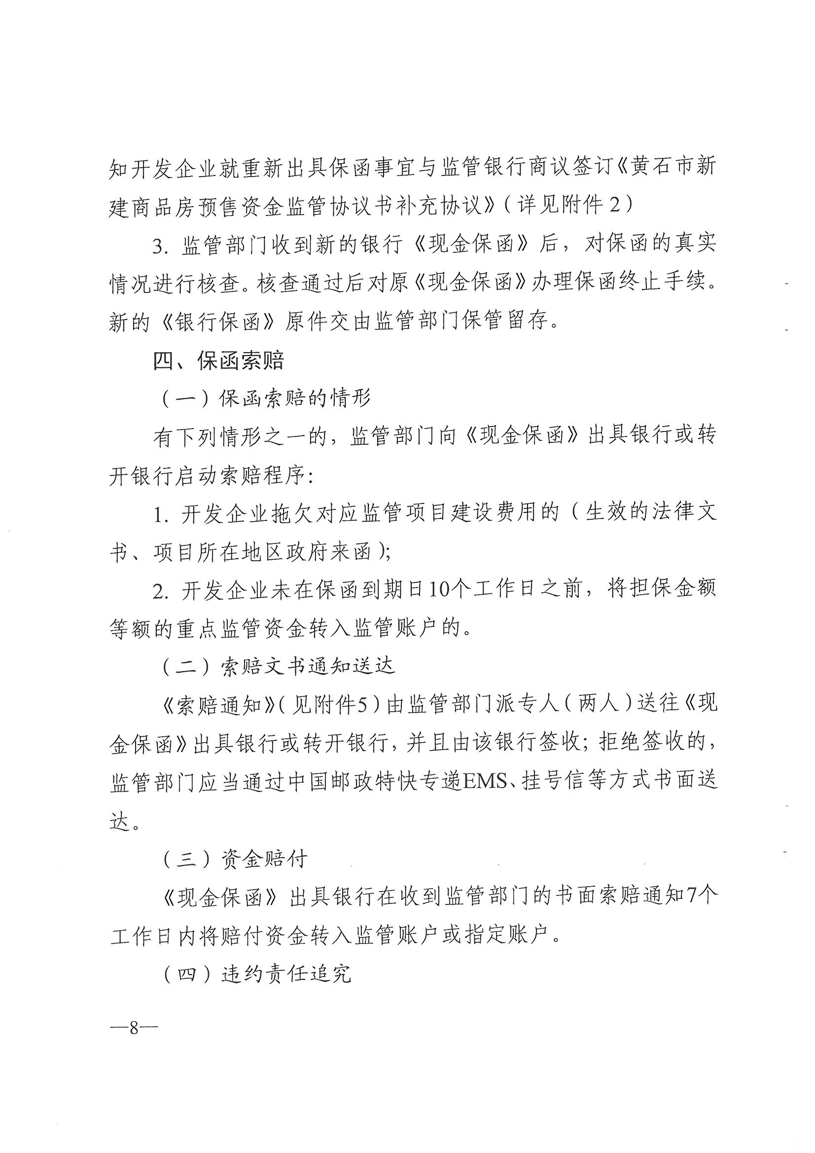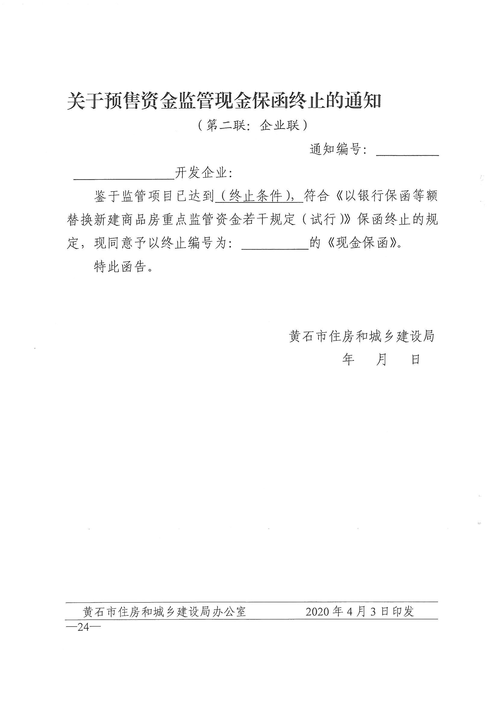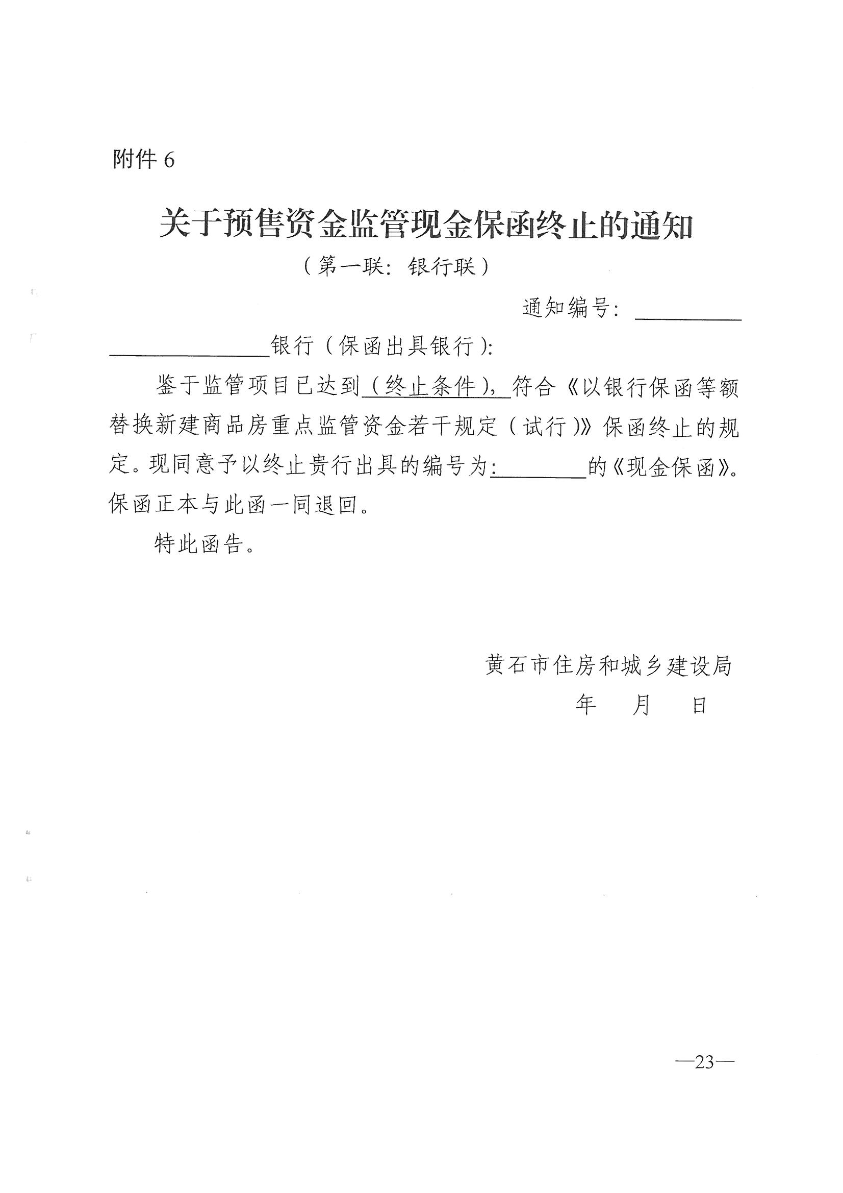 黄石市住房和城乡建设局关于印发《以银行保函等额替换新建商品房重点监管资金若干规定(试行)和操作规范(试行)》的通知