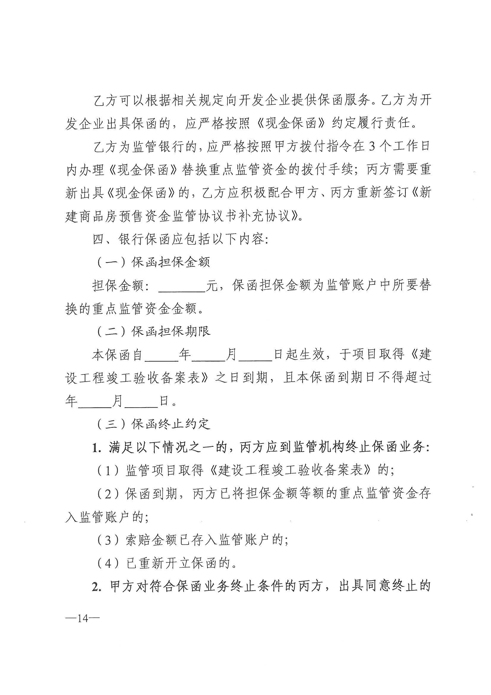 关于印发《以银行保函等额替换新建商品房重点监管资金若干规定(试行)和操作规范(试行)》的通知