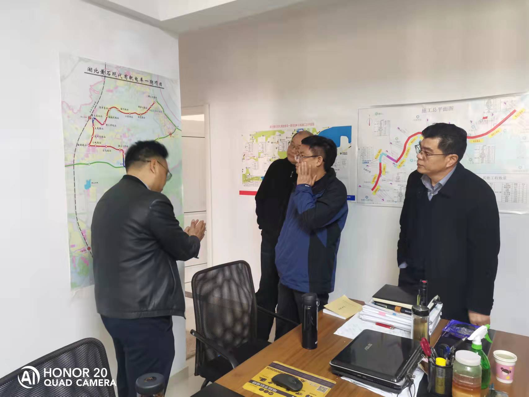 2022年3月8日上午,为进一步加强黄石市重点工程有轨电车项目质量管控,黄石市住房和城乡建设局党组成员、副局长蒋盛淼,质监站负责人喻韶州率质监站相关工作人员前往有轨电车项目部调研。