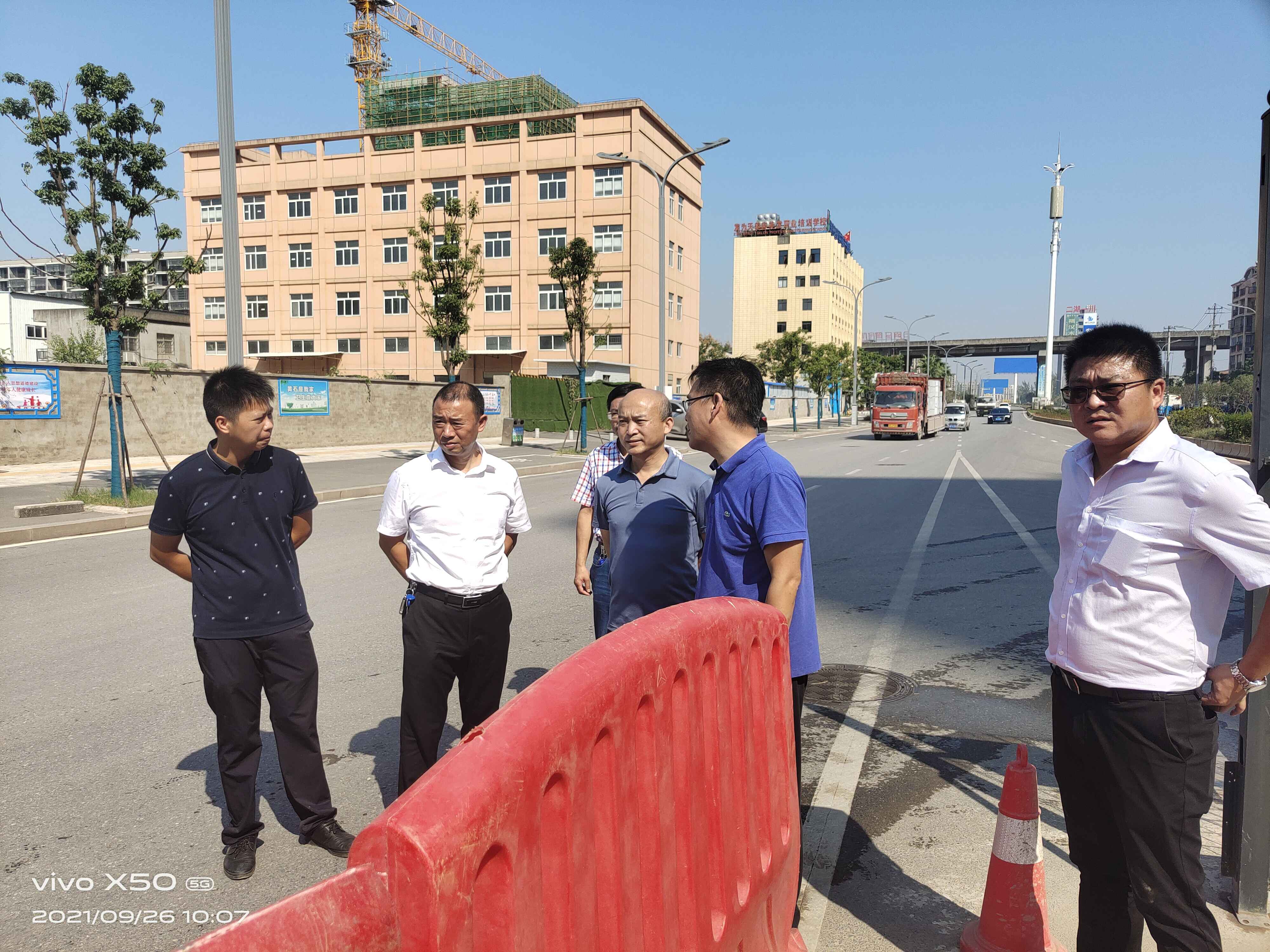 邓斌一行督导了整个工程进展情况,对文明施工基本满意。在工程一标段,存在近百米的围档缺失,没有按文明施工的要求围起来,有一段花坛祼土没有按照文明施工的要求用绿网覆盖,个别围档存在脏乱现象。发现问题后,邓斌当即召集业主单位城发集团及施工单位中铁大桥局现场负责人当场指出问题,要求立即整改,展示我市文明施工形象。同时邓斌还提醒现场管理的同志要做好防疫、防暑工作。业主方及施工方现场负责人当场均表示立行立改,做到文明施工、安全施工。