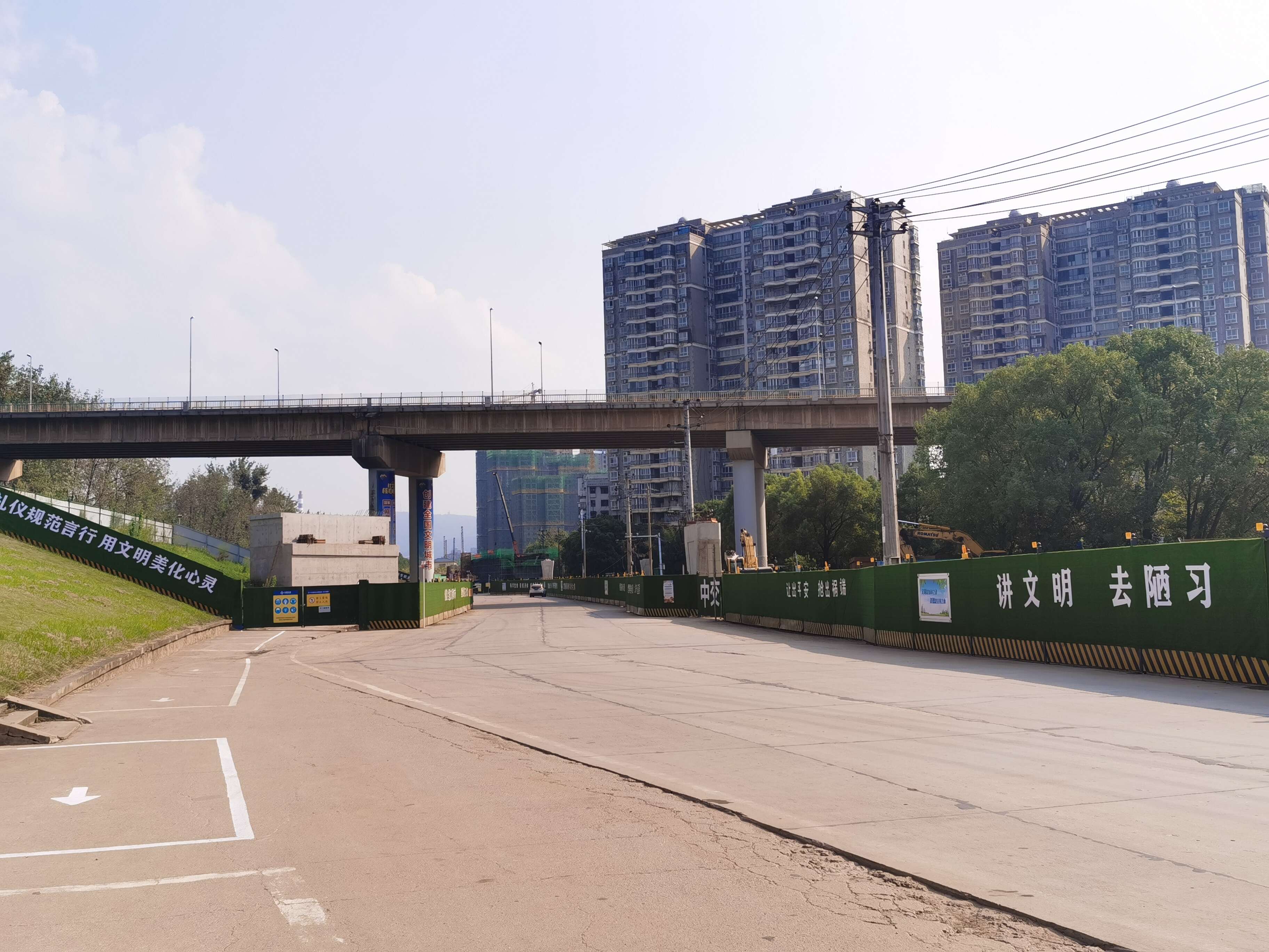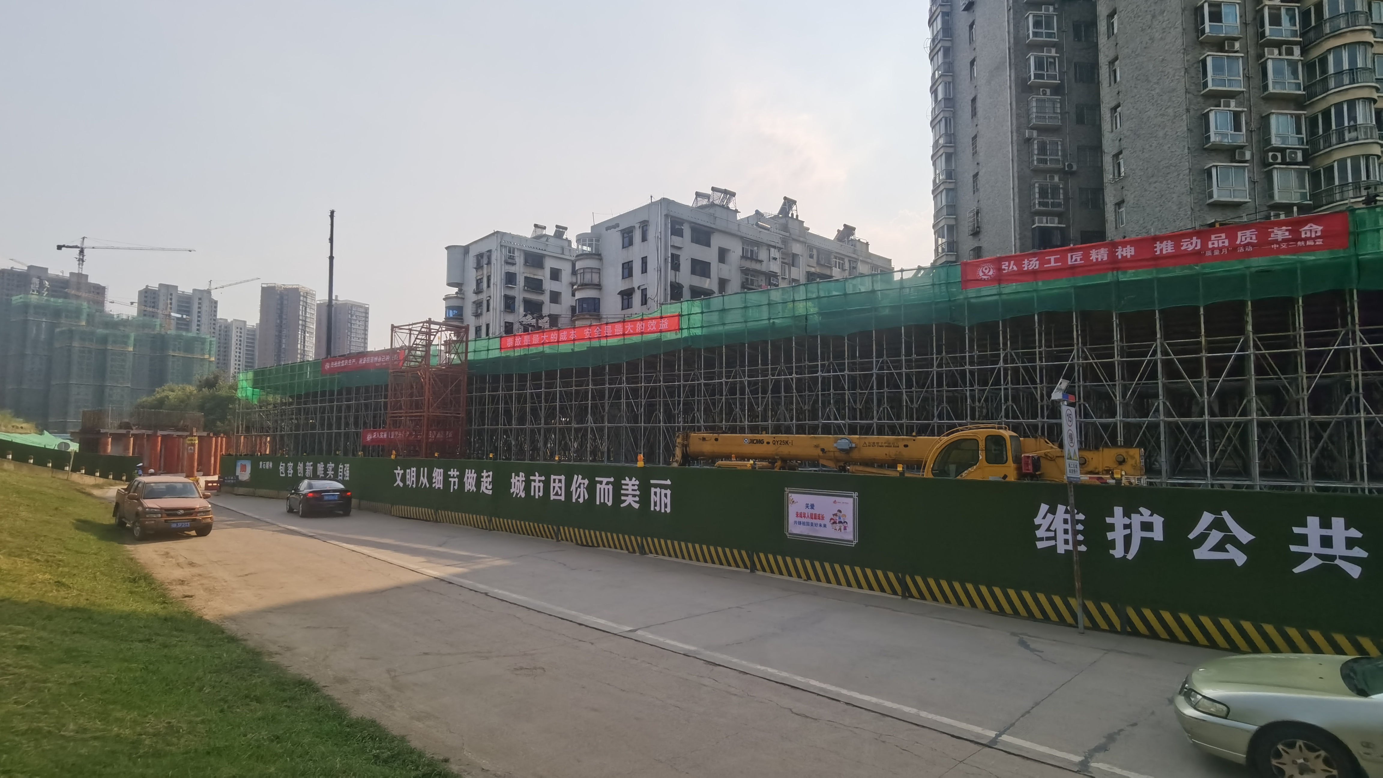 为展示文明施工形象,施工单位按要求做了围档,围档上还配有醒目的争创文明城市的标语。沿线社区也因围档影响居民出行做了大量的工作,争取到市民群众的理解与支持。在主管部门、业主及施工单位、沿线社区及广大市民群众的大力支持下,目前该工程正有条不紊向前推进中。