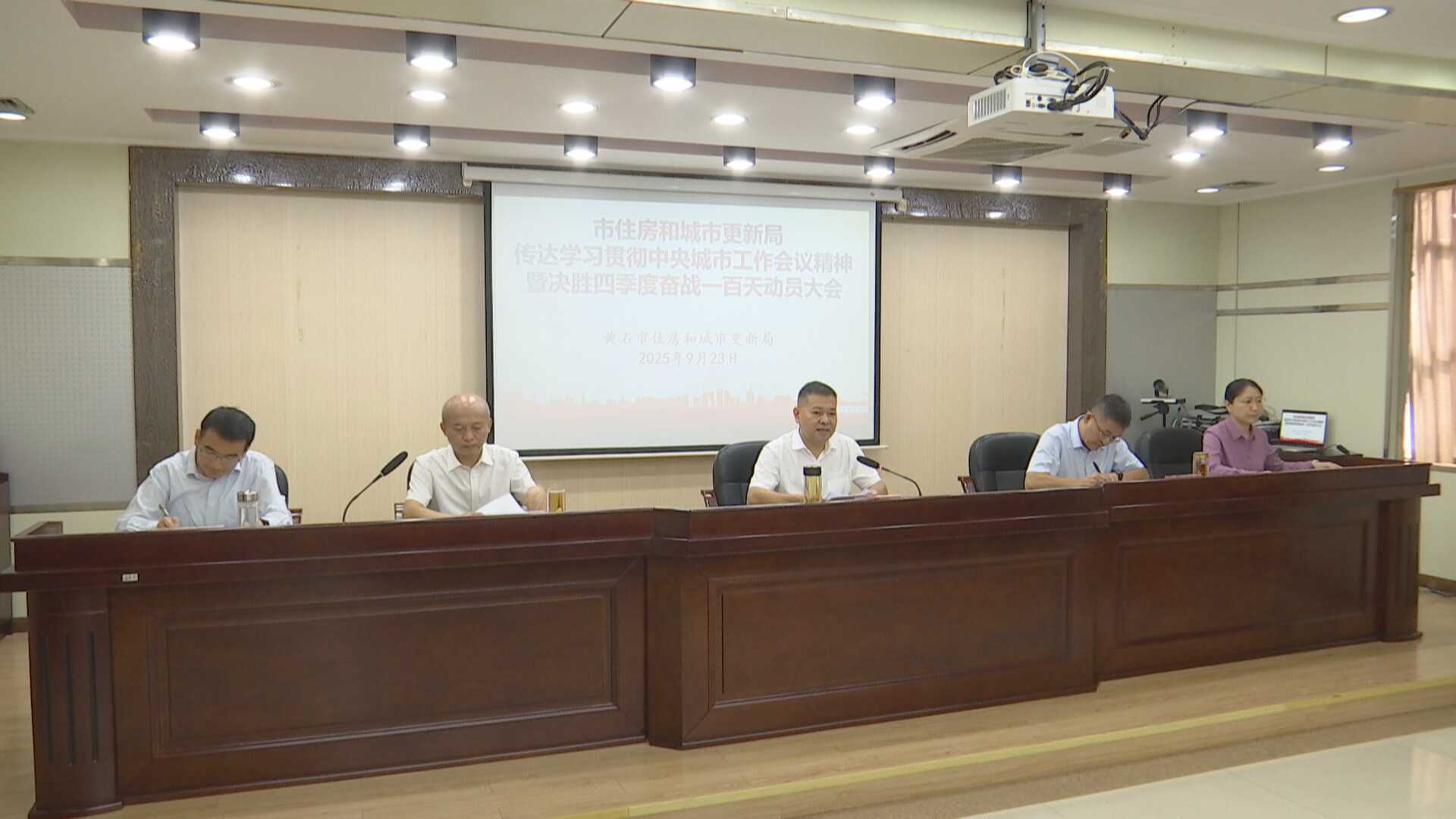 9月23日上午,为进一步深入学习贯彻城市工作会议精神,更好地推动《中共中央、国务院关于推动城市高质量发展的意见》在黄石落实落地,同时决胜四季度,推动实现全年圆满收官,市住更局召开传达学习贯彻中央城市工作会议精神暨决胜四季度奋战一百天动员会。局党组班子成员、副县级以上干部以及局属各单位班子成员、机关各科室副科级以上干部参加了会议。