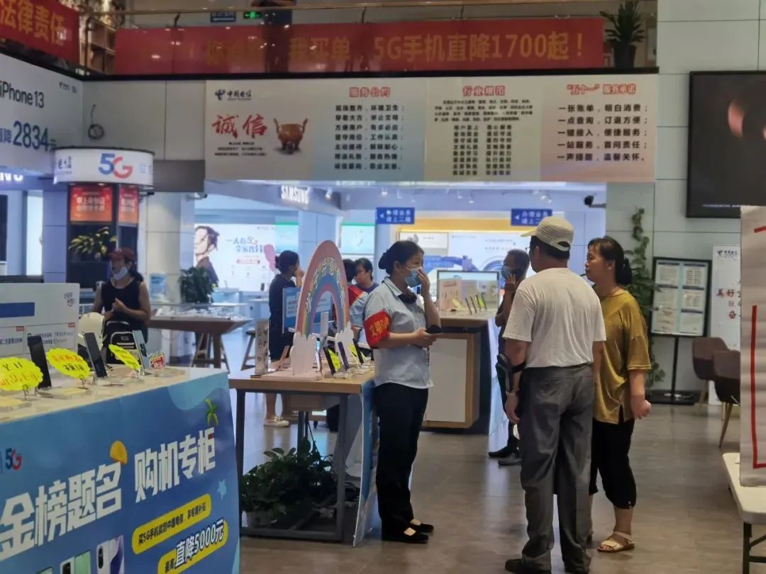 营业厅文明创建氛围浓厚,五块大型电子显示屏不间断滚动播出创文广告宣传。厅内建有爱心驿站、志愿服务站等便民服务设施,同时开辟无障碍通道和专为中老年客户及特殊人群服务的爱心台席。二楼智慧家庭演示区每周二开办“爱心微课堂”,为中老年用户提供反诈宣传及防诈知识讲解。营业厅多次荣获国家级、省市级青年文明号,工人先锋号,明星班组等荣誉称号。