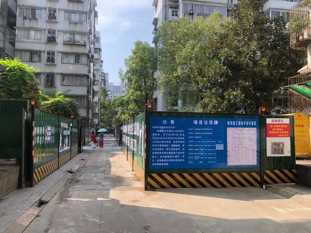 小区改造范围规范设置了围挡和提示牌,公益宣传氛围浓厚。施工区域路面干净整洁,居民出行方便。合理组织施工,采取降尘降噪措施,建筑材料摆放合理,减少对居民生活影响。