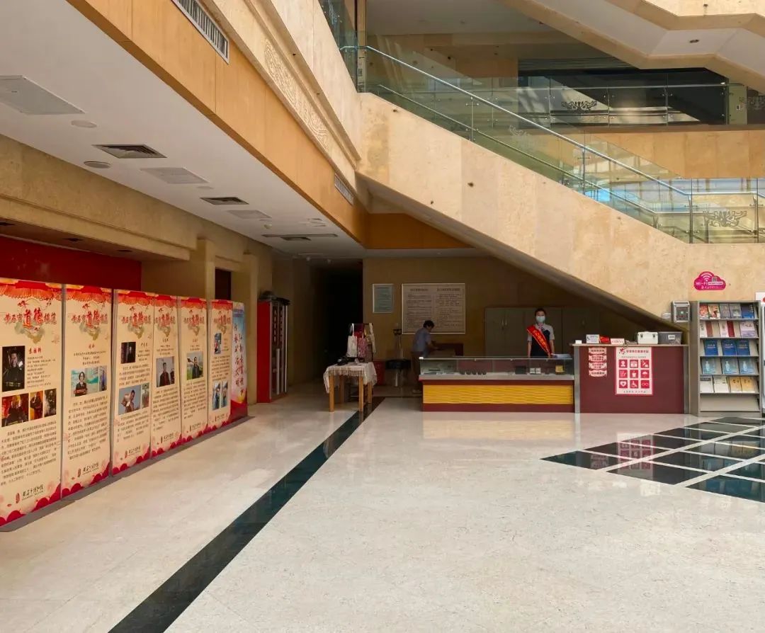 黄石市博物馆入口处设有免费参观须知,院内设有公益广告景观小品、无障碍停车位。展厅入口左侧设有无障碍通道及帮扶电话,展厅门口两侧公益广告、宣传栏设置规范。展厅内设有黄石市道德模范专题展览,服务台设有行业规范展示、学雷锋志愿服务站,有佩戴标识的志愿服务人员、服务项目、相关管理制度,正常提供服务。无障碍卫生间设施完备、正常开放。